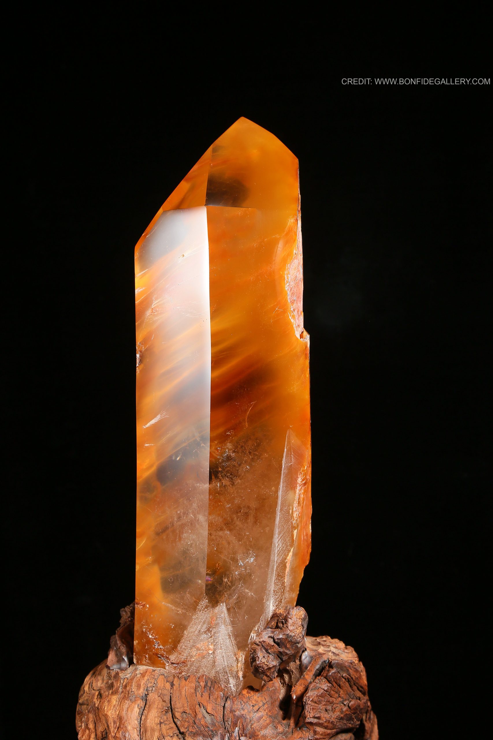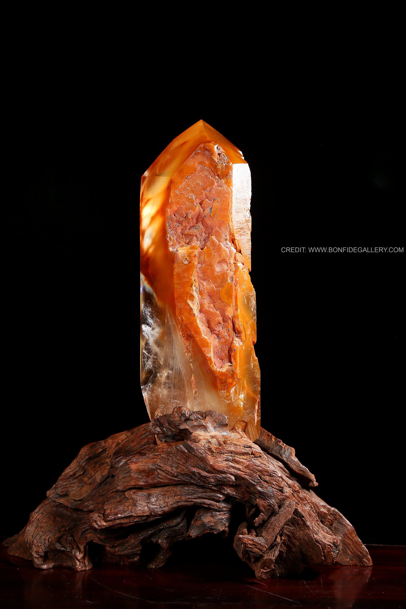 Beautiful Amber Radiance Obelisk. crystal amber wood base decorative natural art sculpture luminescent earth tones