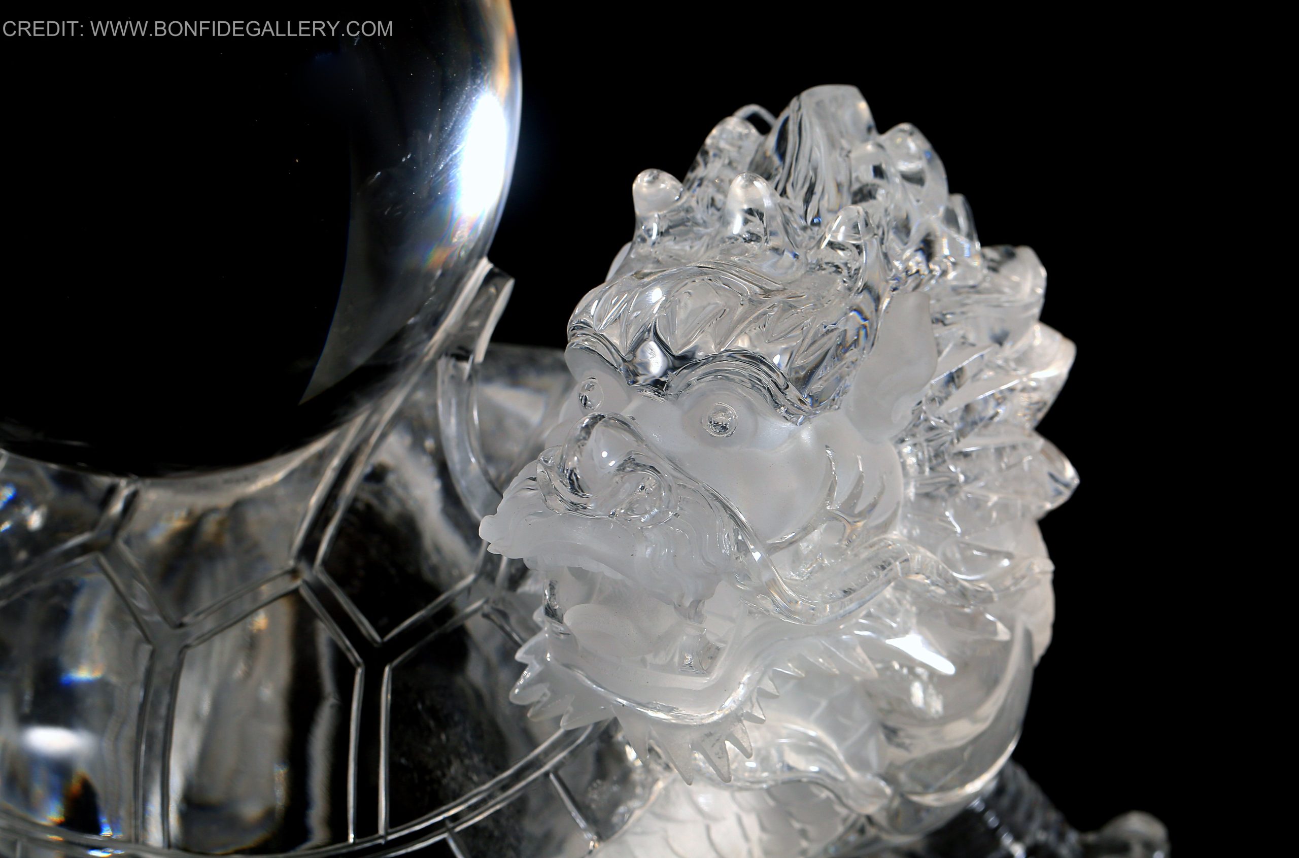 Beautiful Celestial Crystal Guardian. crystal turtle orb transparent mythology sculpture feng shui mystical