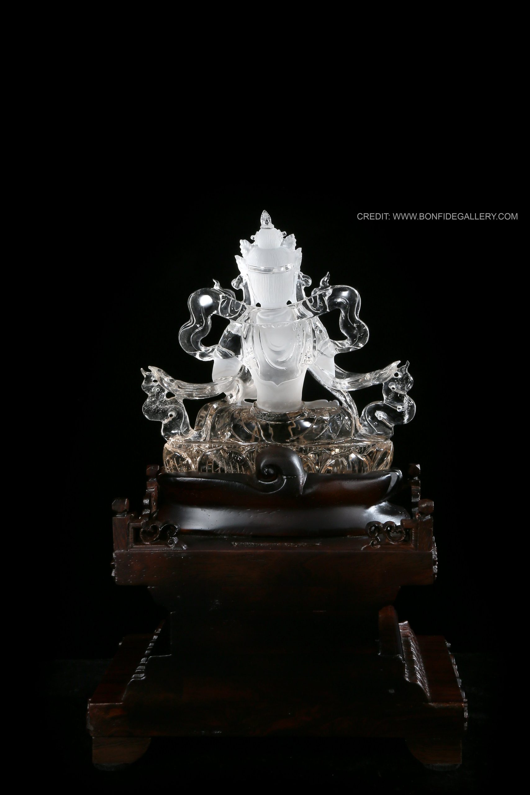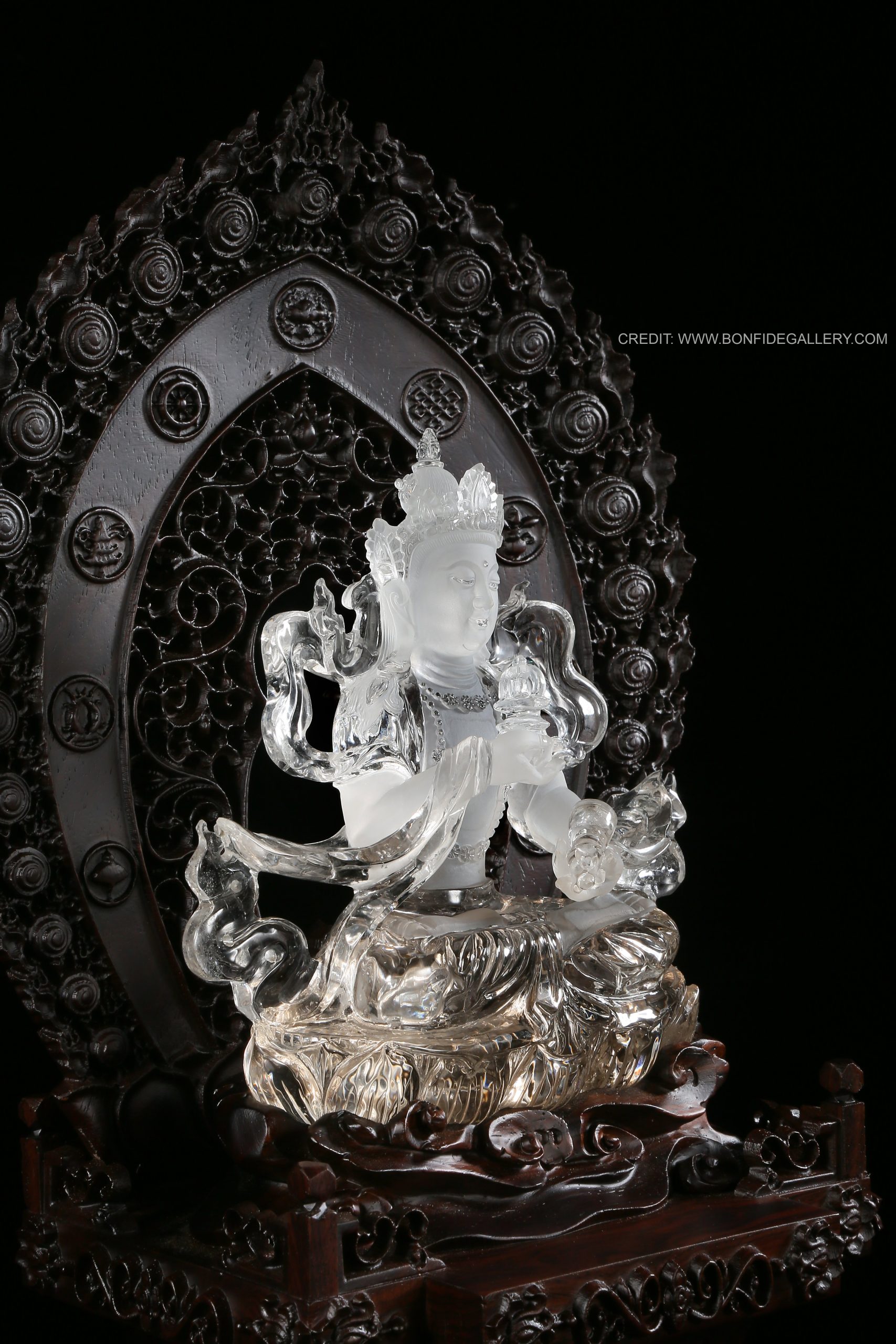 Beautiful Celestial Deity Serenity. crystal intricate carving spiritual divine figure ornate Buddhism clear material symbolism