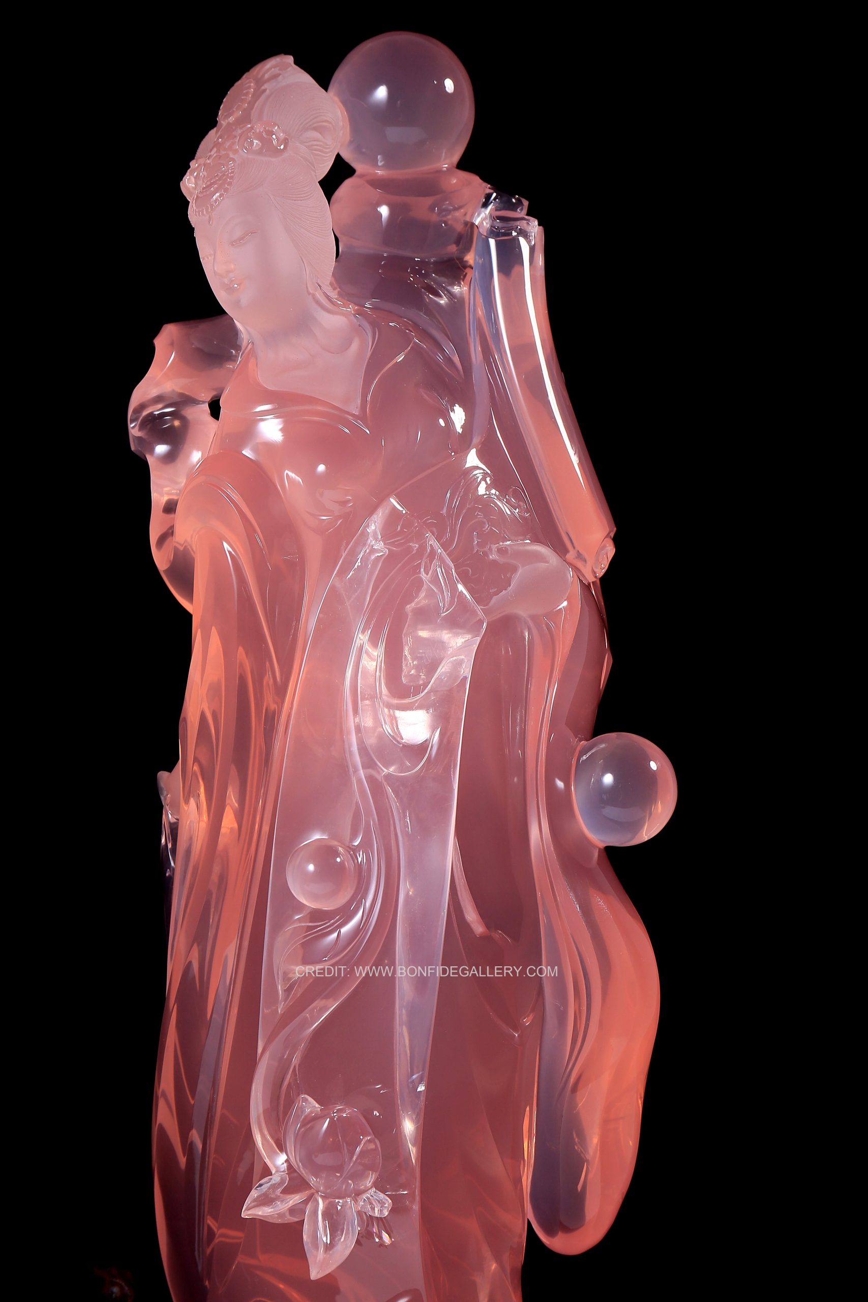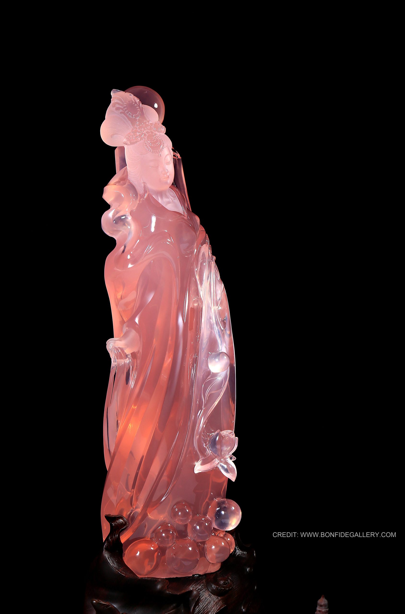 Beautiful Celestial Grace Mystic. rose quartz ethereal mythical figure elegant gemstone sculpture Asian art divine presence
