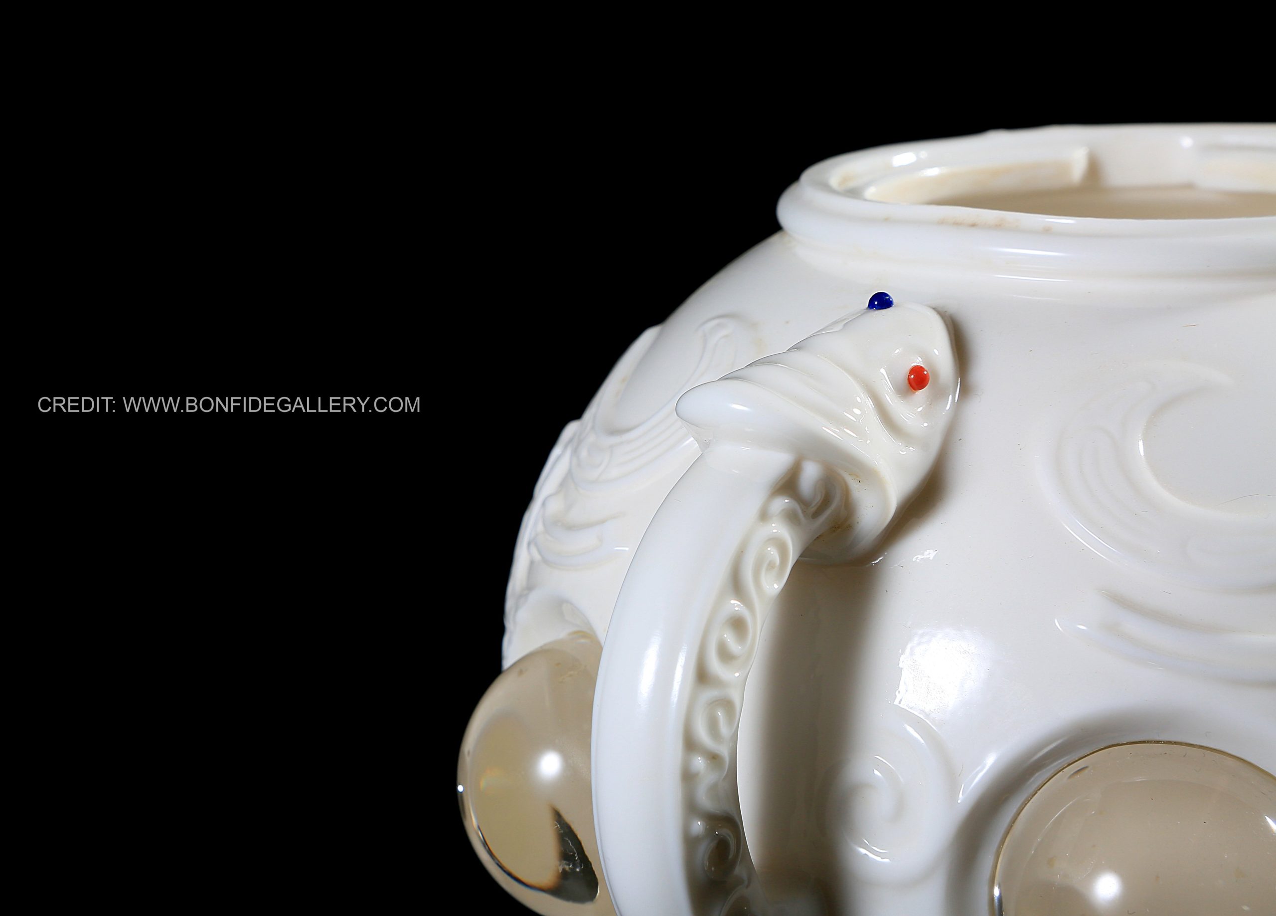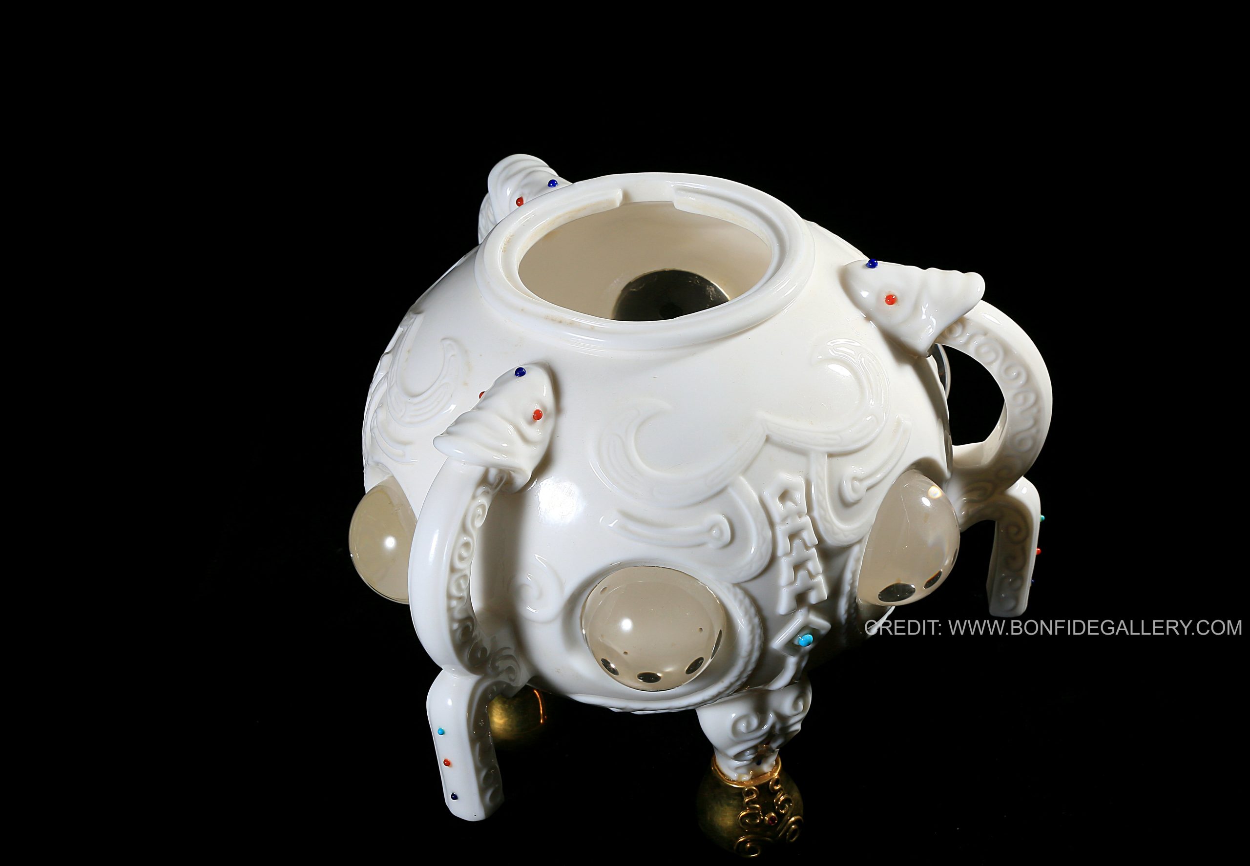 Beautiful Celestial Guardian Vessel. porcelain ornate mythical gold accents decorative contemporary fantasy sculpture