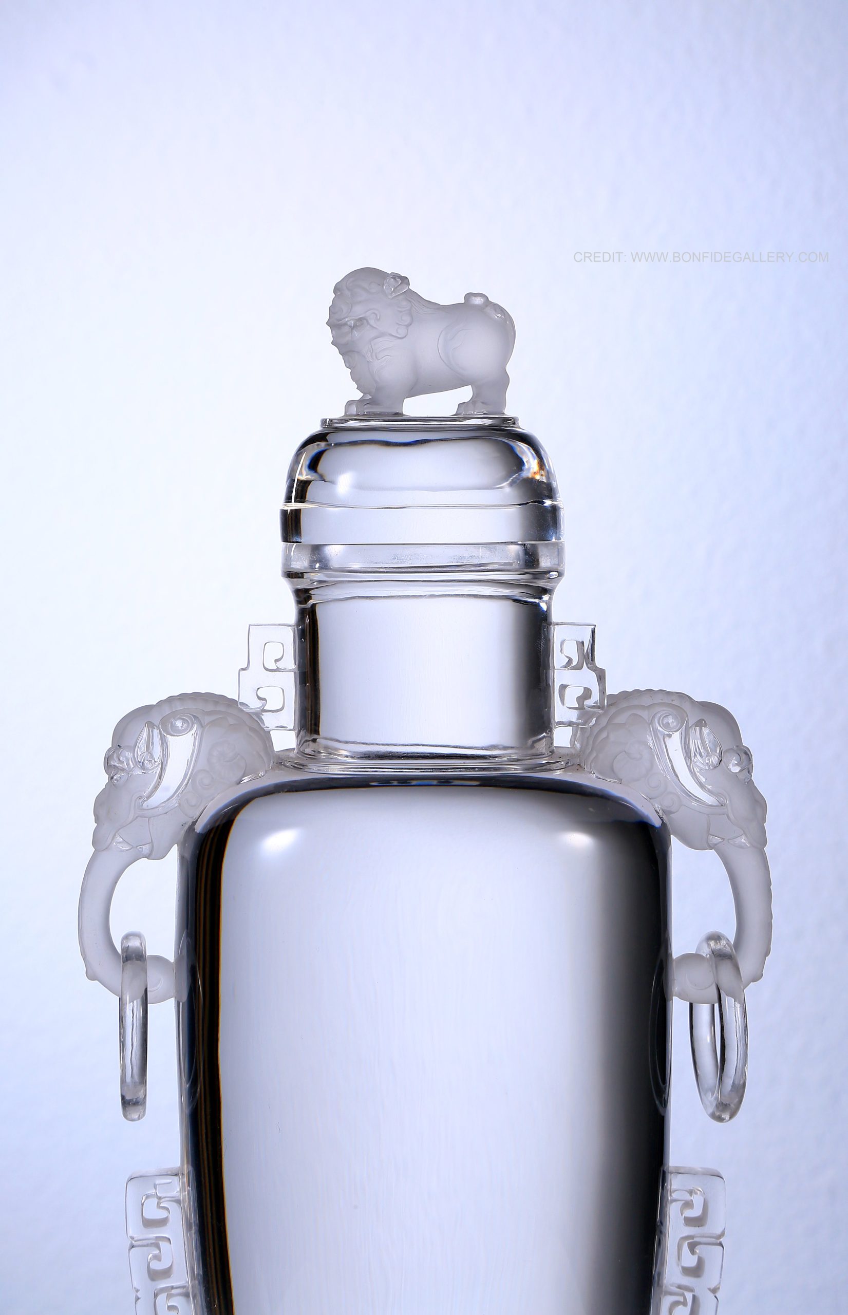Beautiful Celestial Guardian Vessel. glass lion mythology elegant carved translucent oriental art decorative