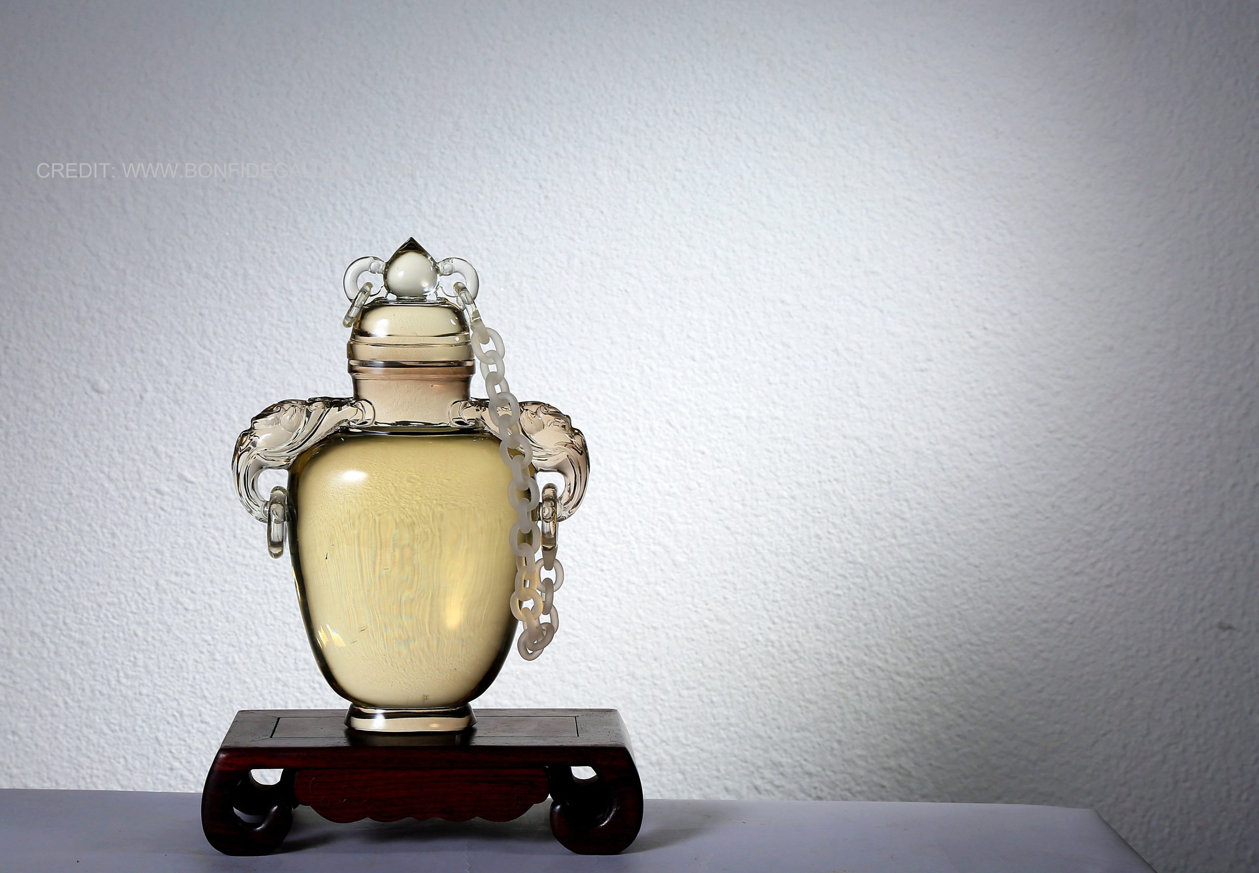 Beautiful Celestial Jade Vessel. jade urn intricate carving traditional Asia sculpture ornate design artisan craftsmanship
