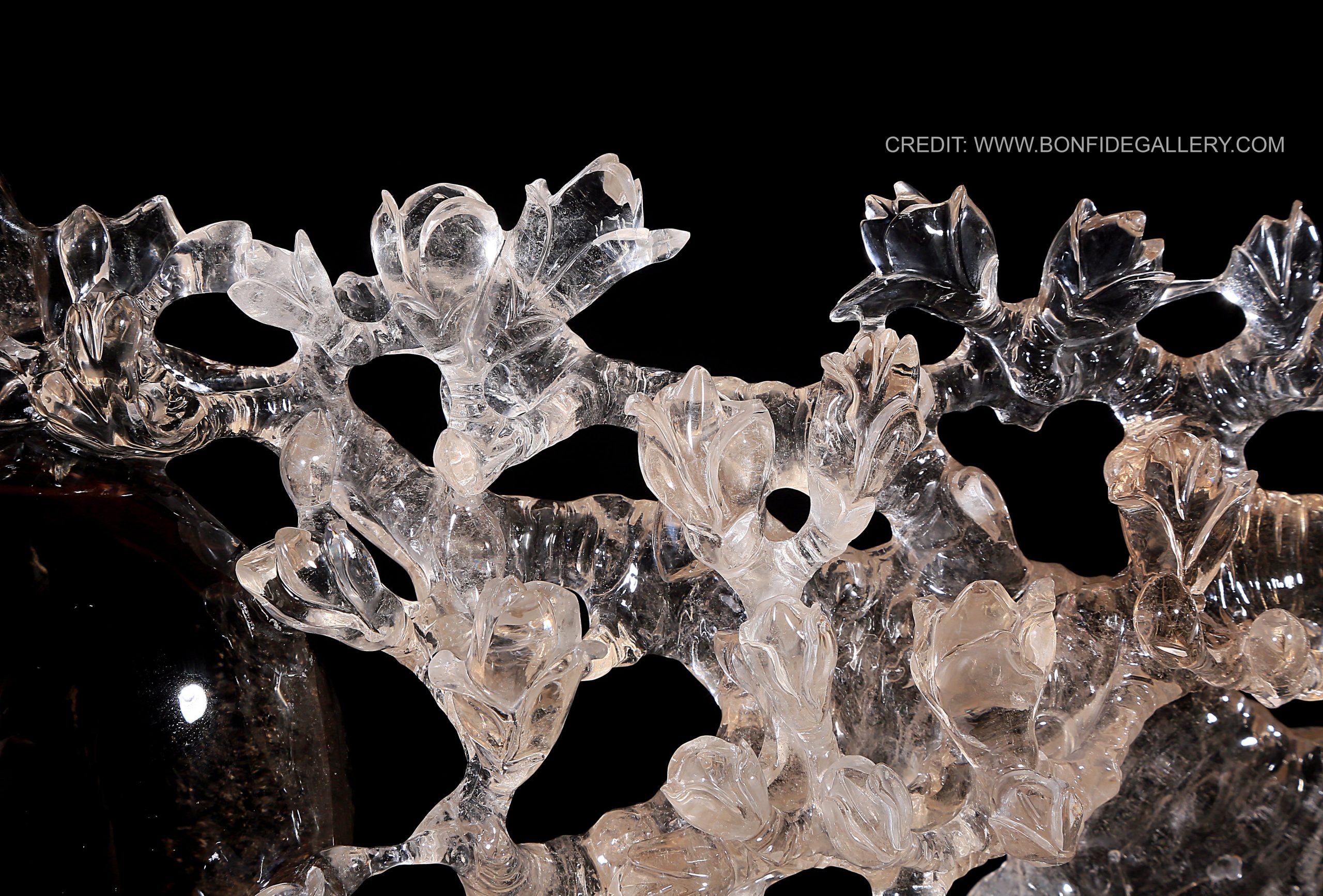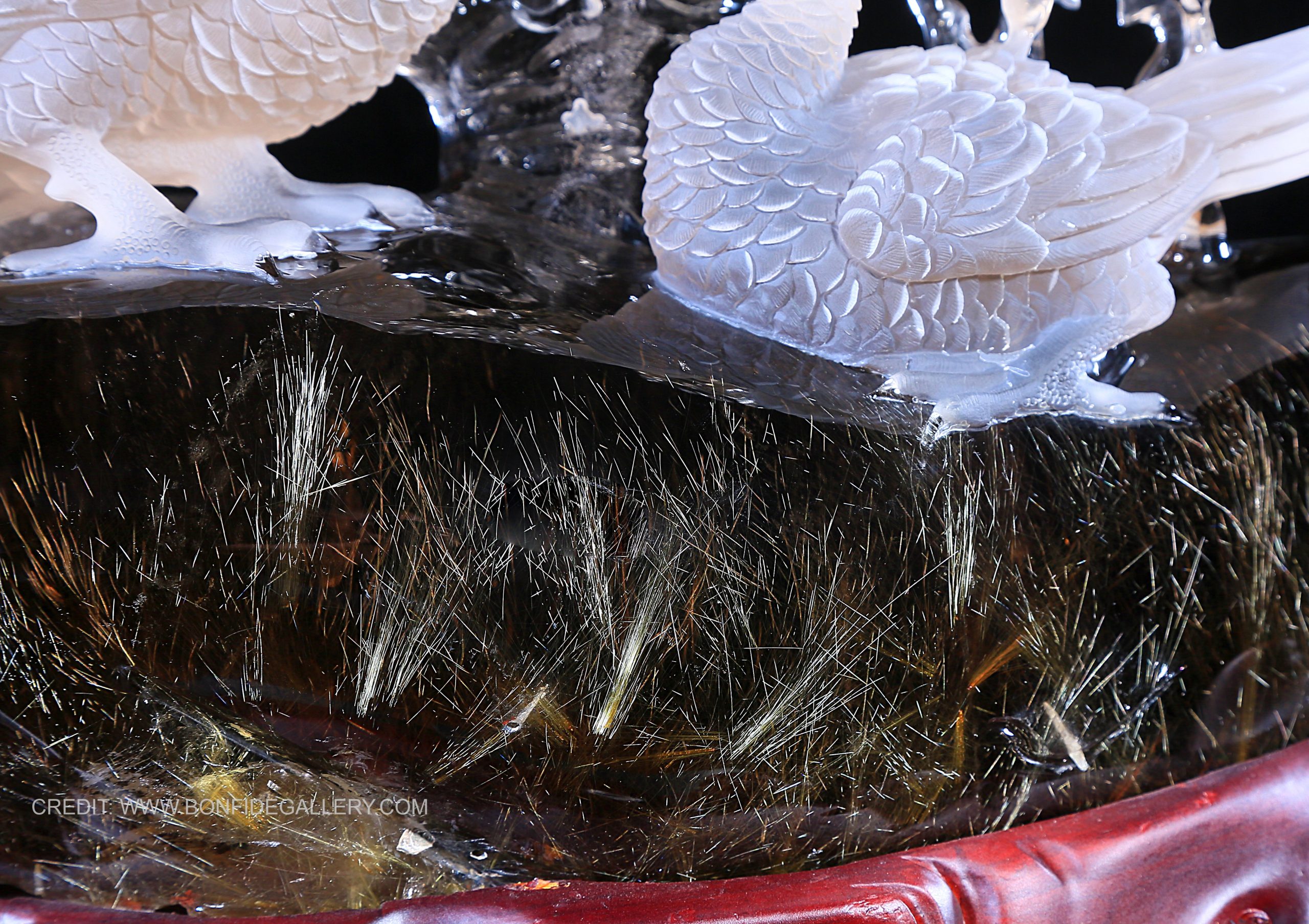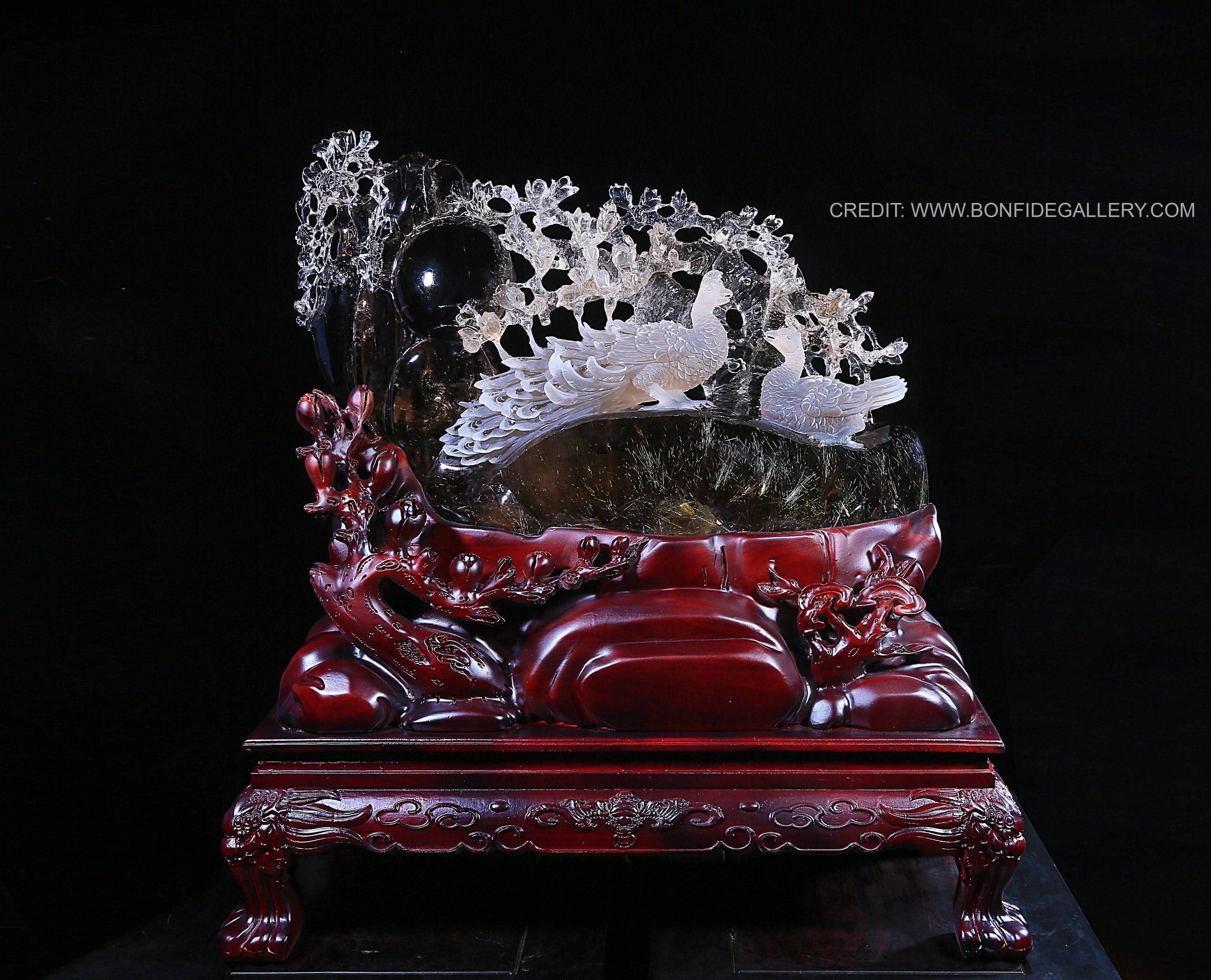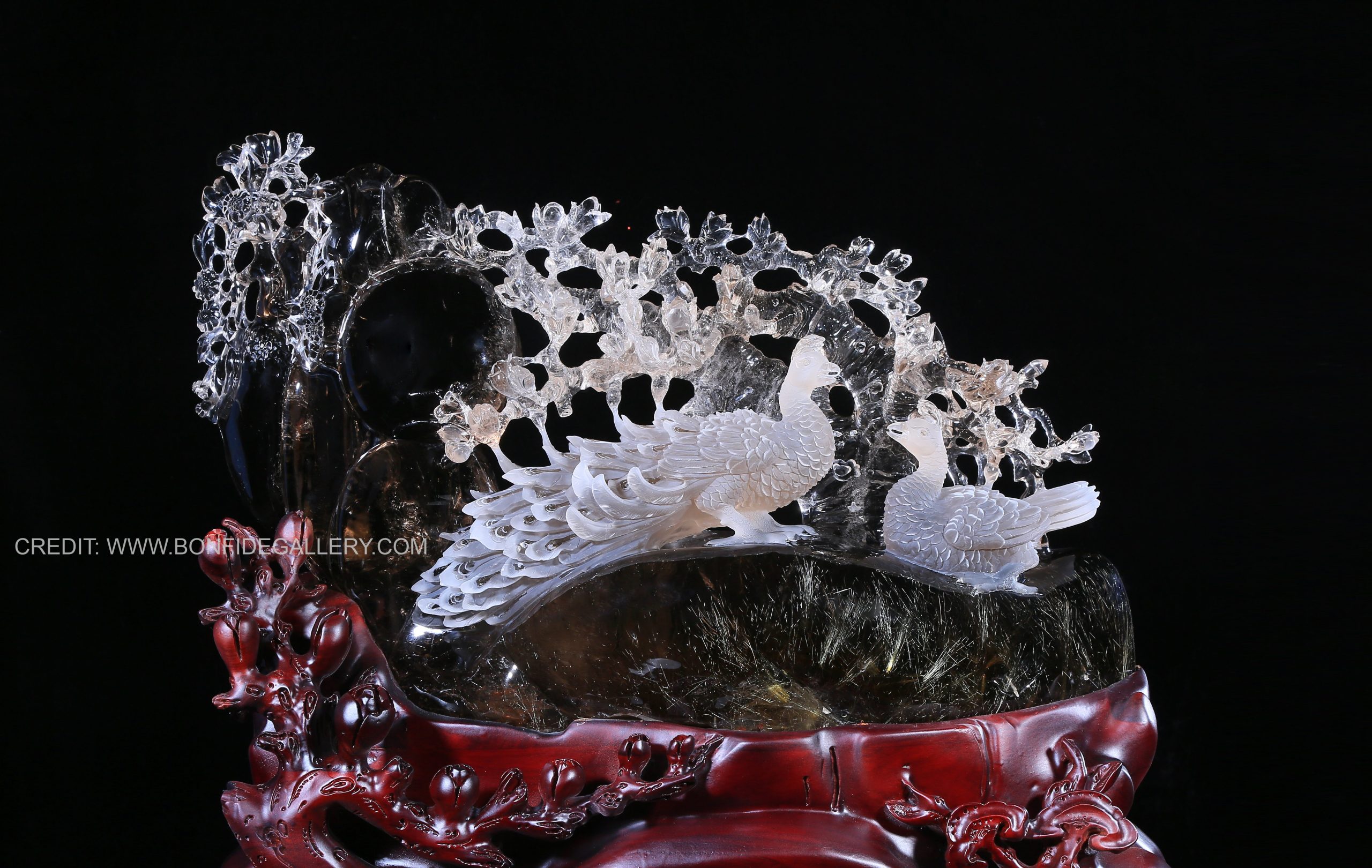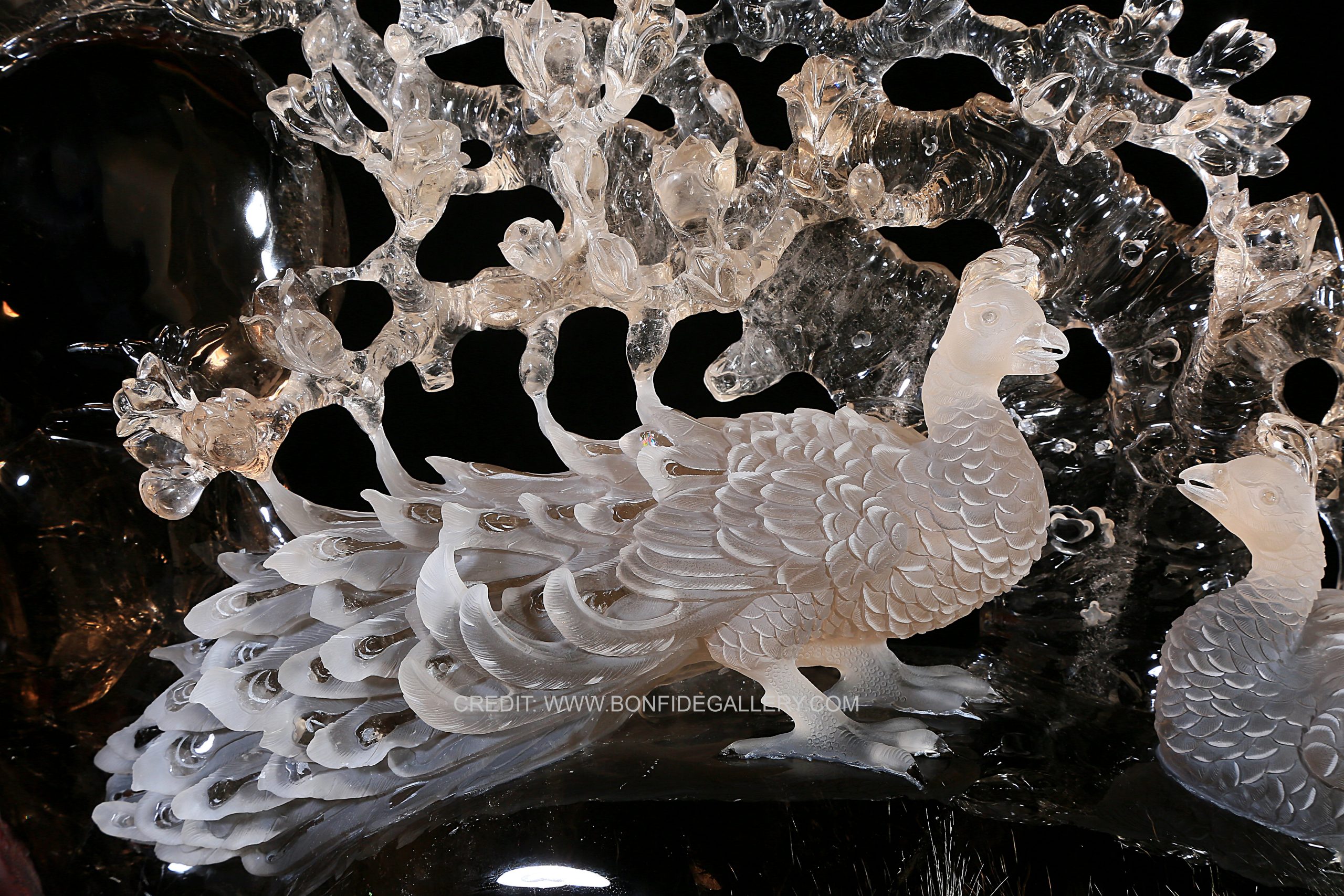 Beautiful Celestial Peacock Elegance. peacock crystal wood nature intricate wildlife sculpture artistry
