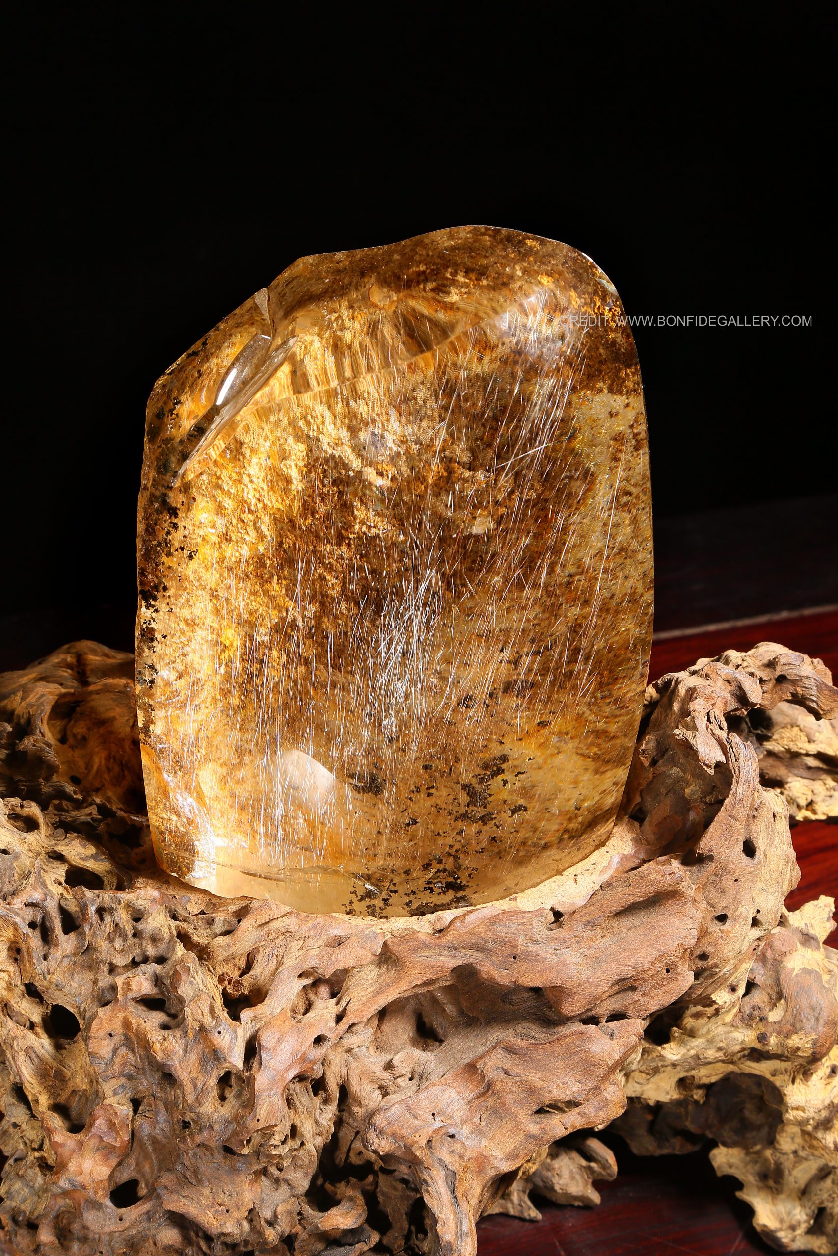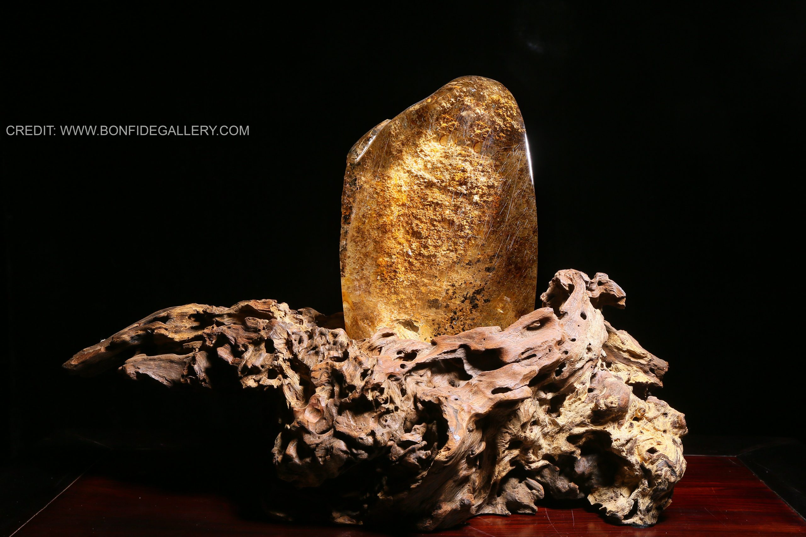 Beautiful Celestial Stone Essence. crystal sculpture natural form gemstone art driftwood base earthy tones abstract representation elemental organic design