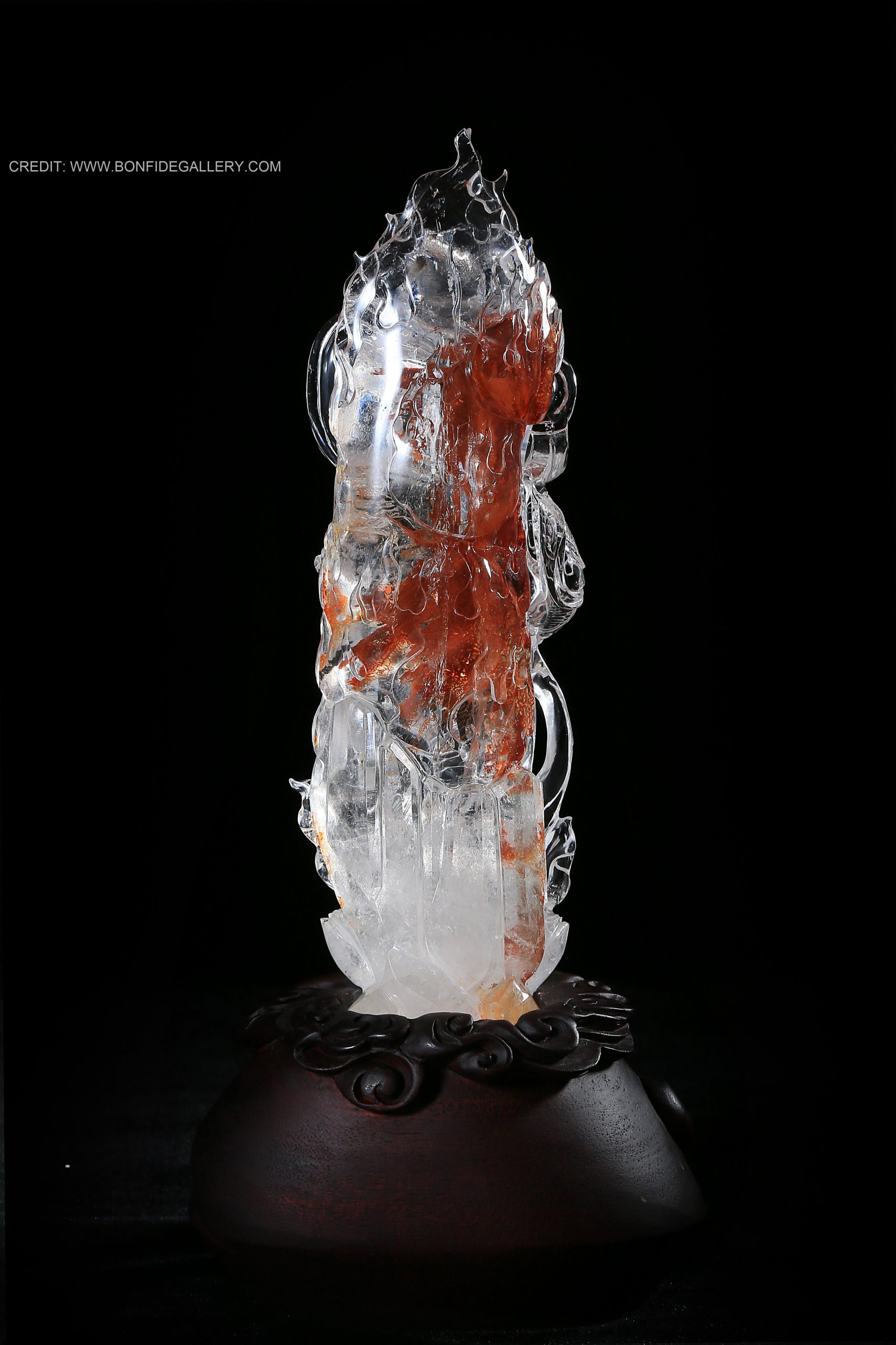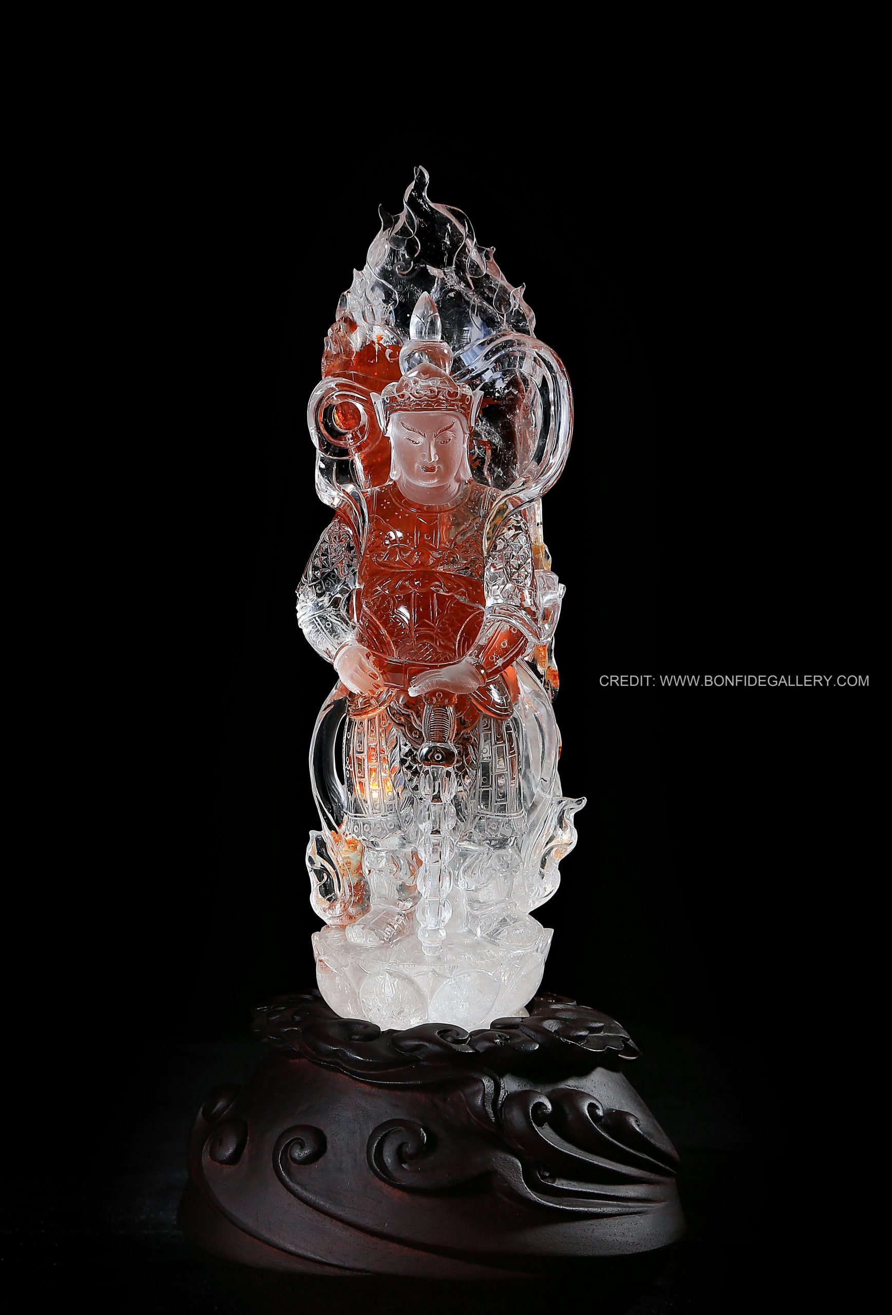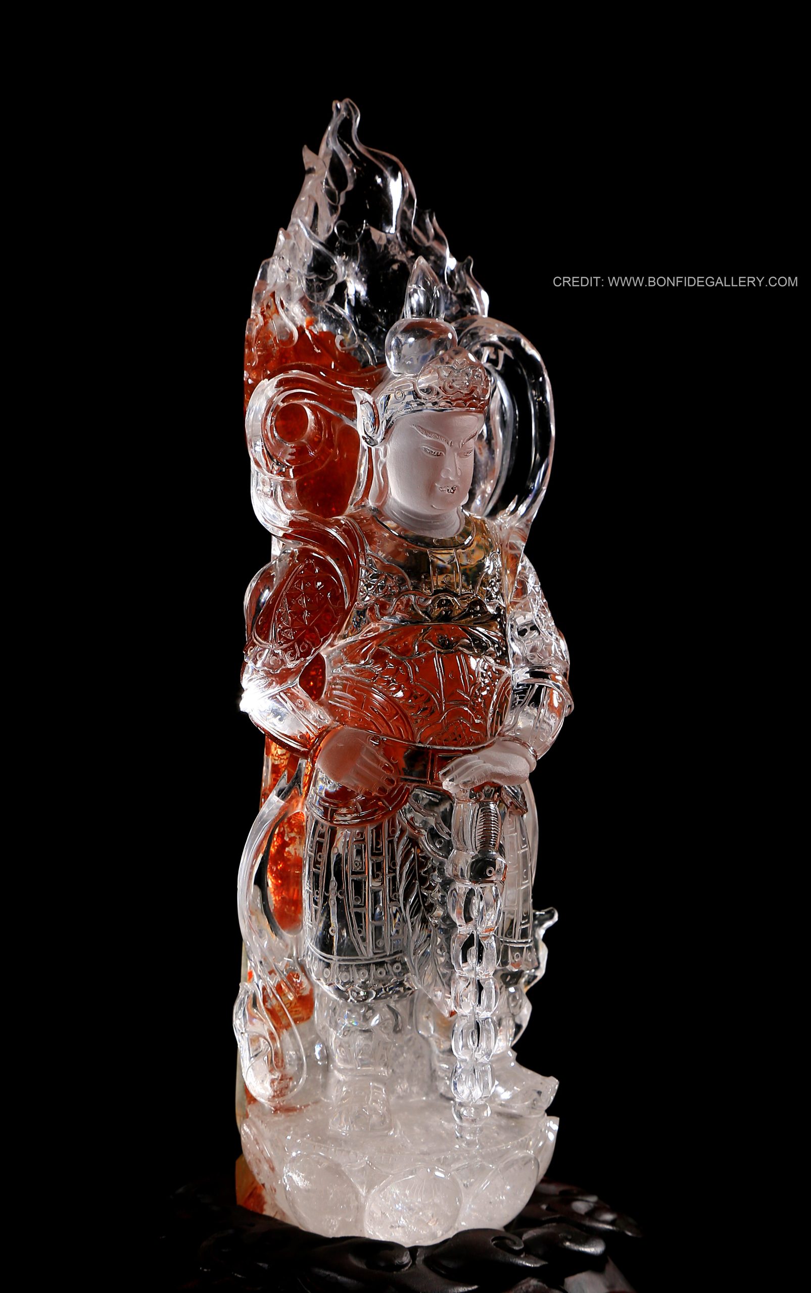 Beautiful Celestial Warrior Essence. crystal guardian intricate fire mythology sculpture deity translucent