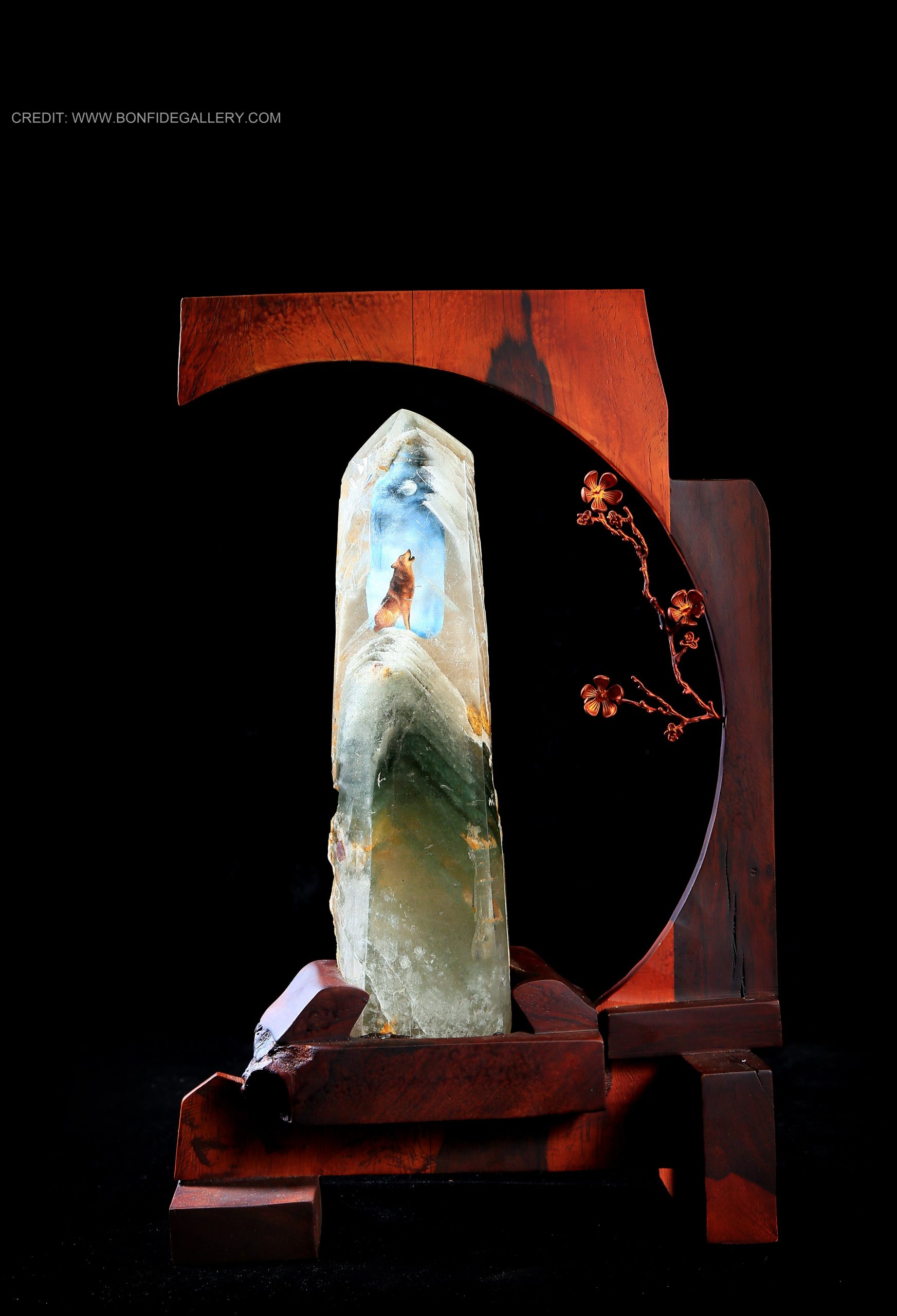 Beautiful Celestial Wolf Obelisk. crystal wolf nature ethereal sculpture hand-carved tranquil art deco