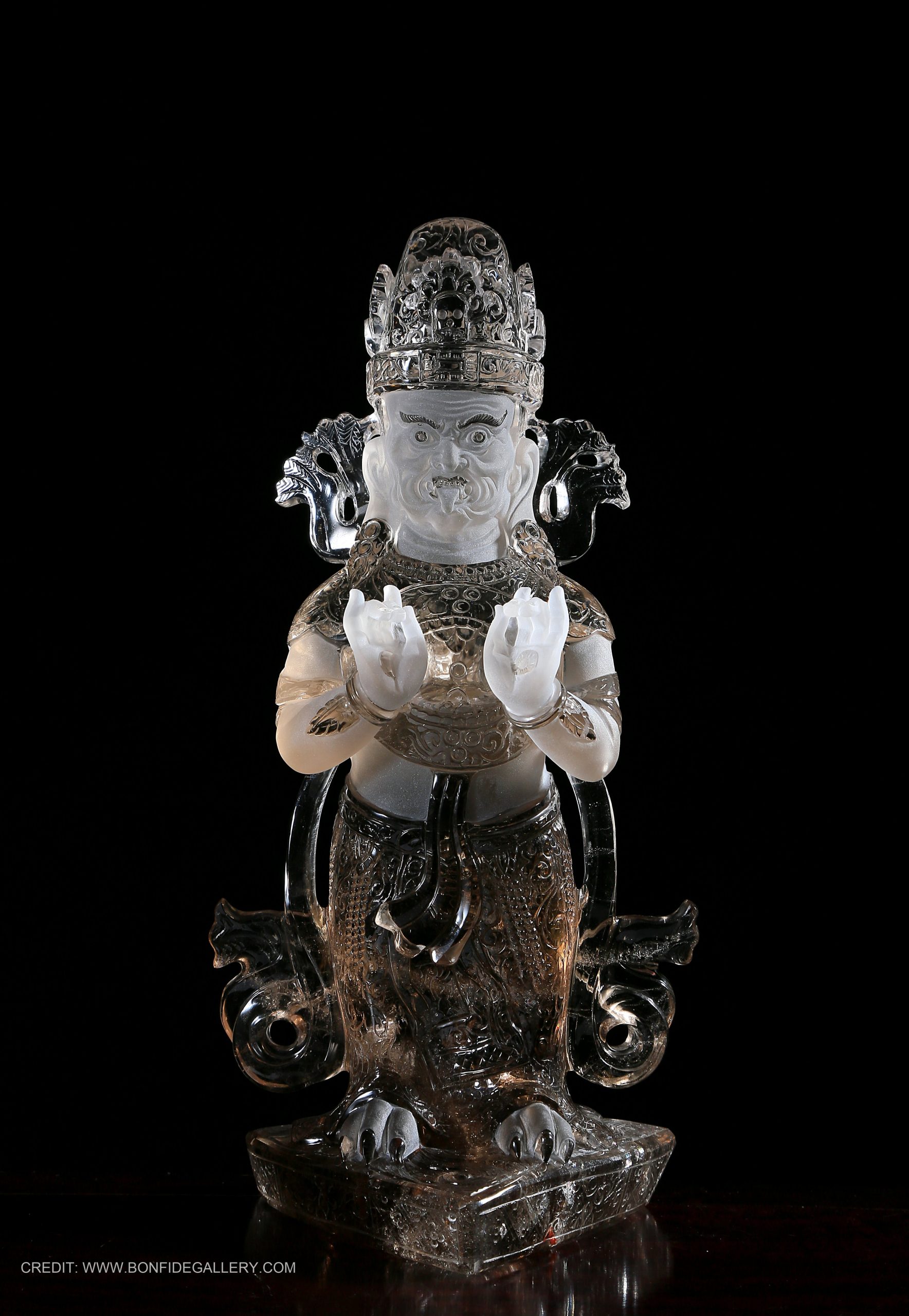 Beautiful Crystal Guardian Deity. crystal deity sculpture spiritual mythology intricate translucent guardian