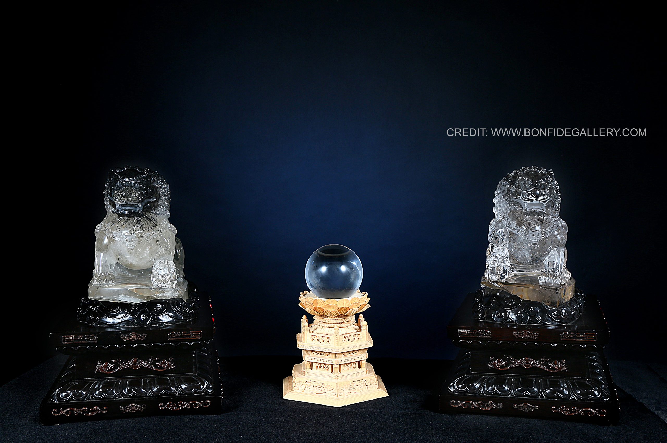 Beautiful Crystal Guardian Lion. Foo dog crystal sculpture protective symbol traditional art clear quartz feng shui Chinese culture mythical creature