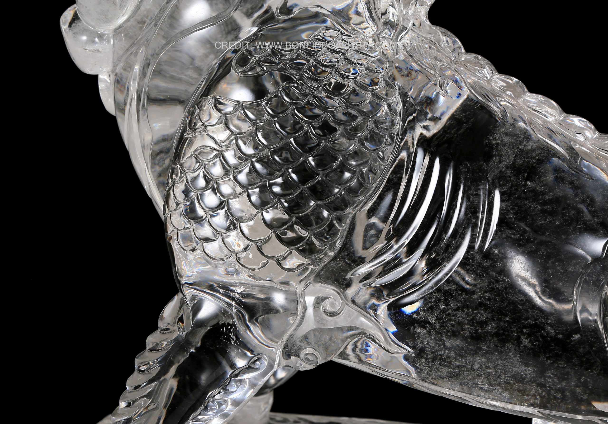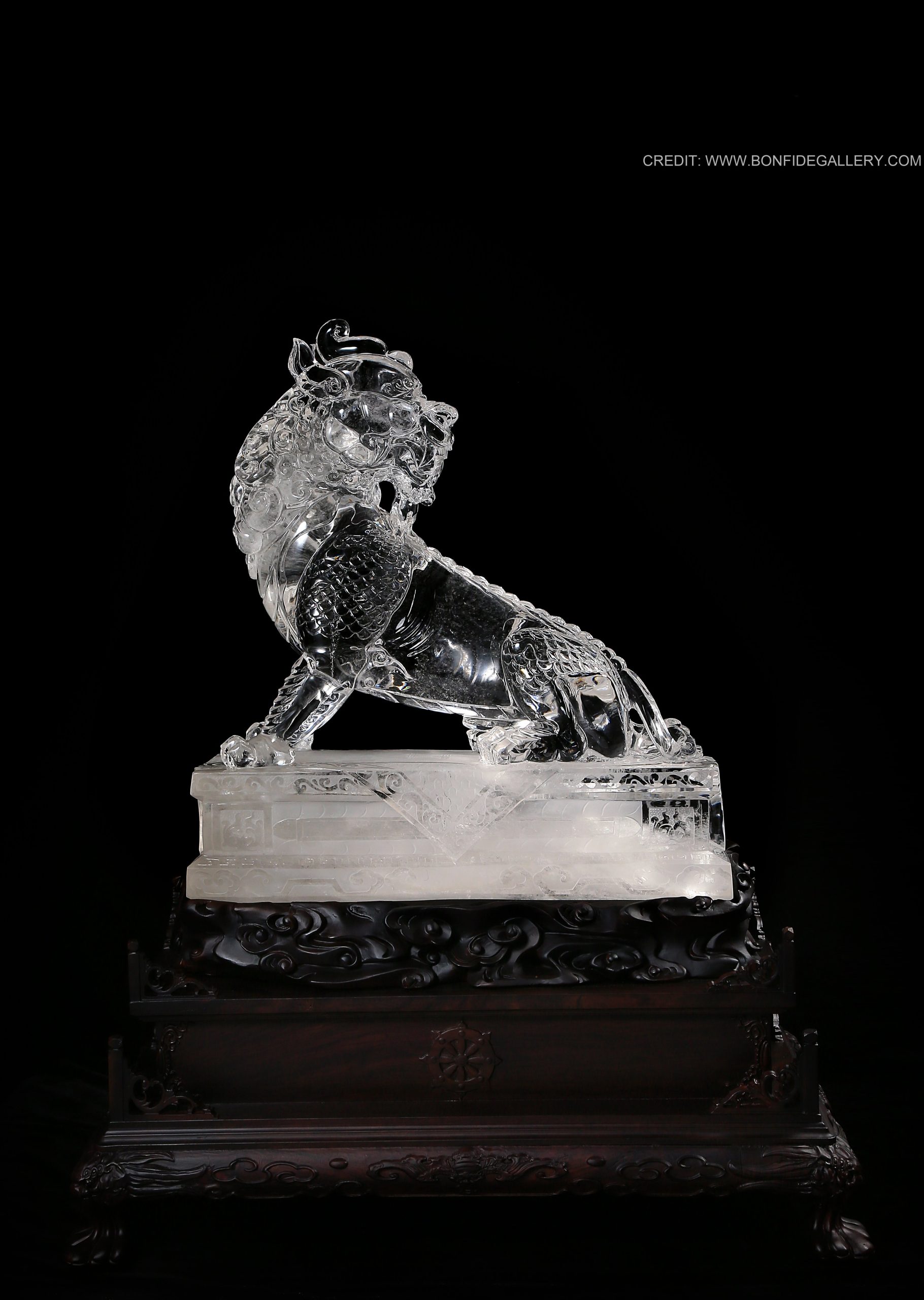Beautiful Crystal Guardian Lion. crystal sculpture guardian lion mythical clear intricate elegant