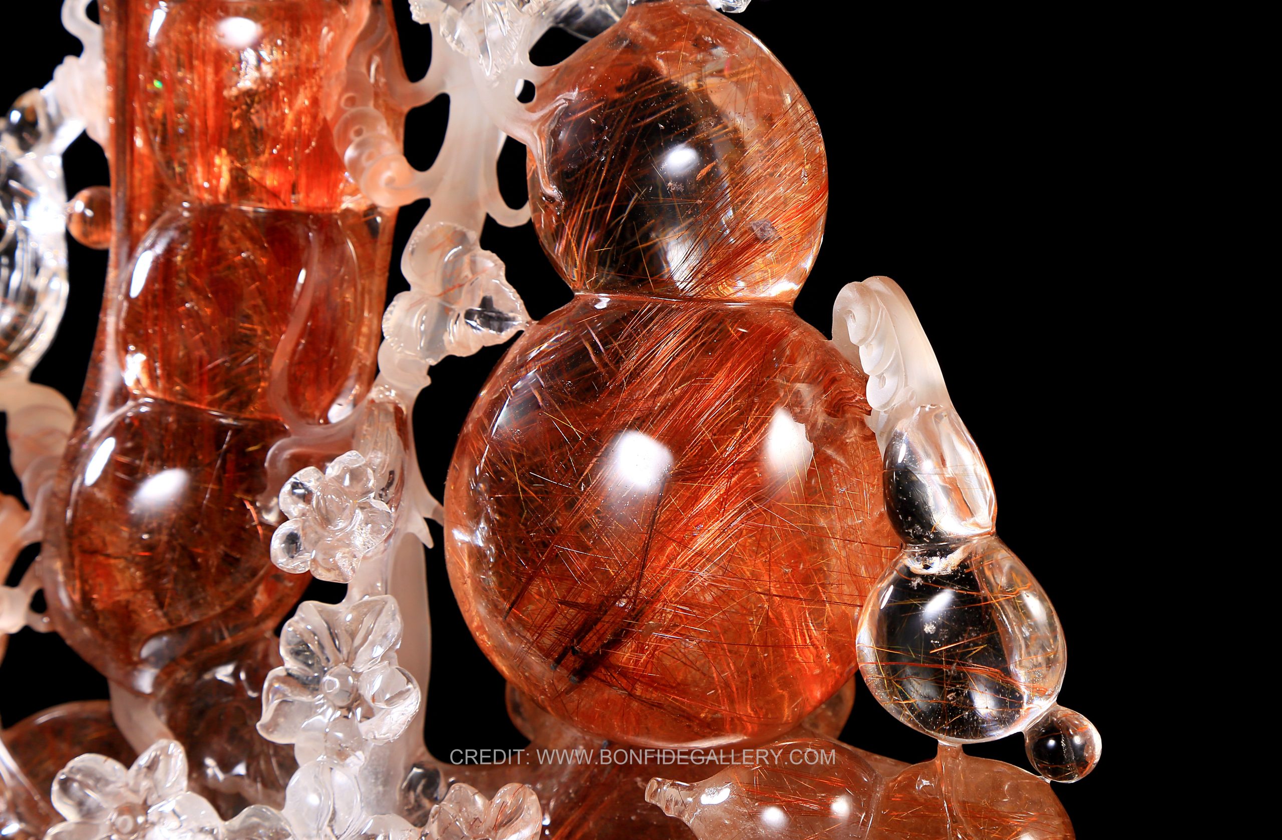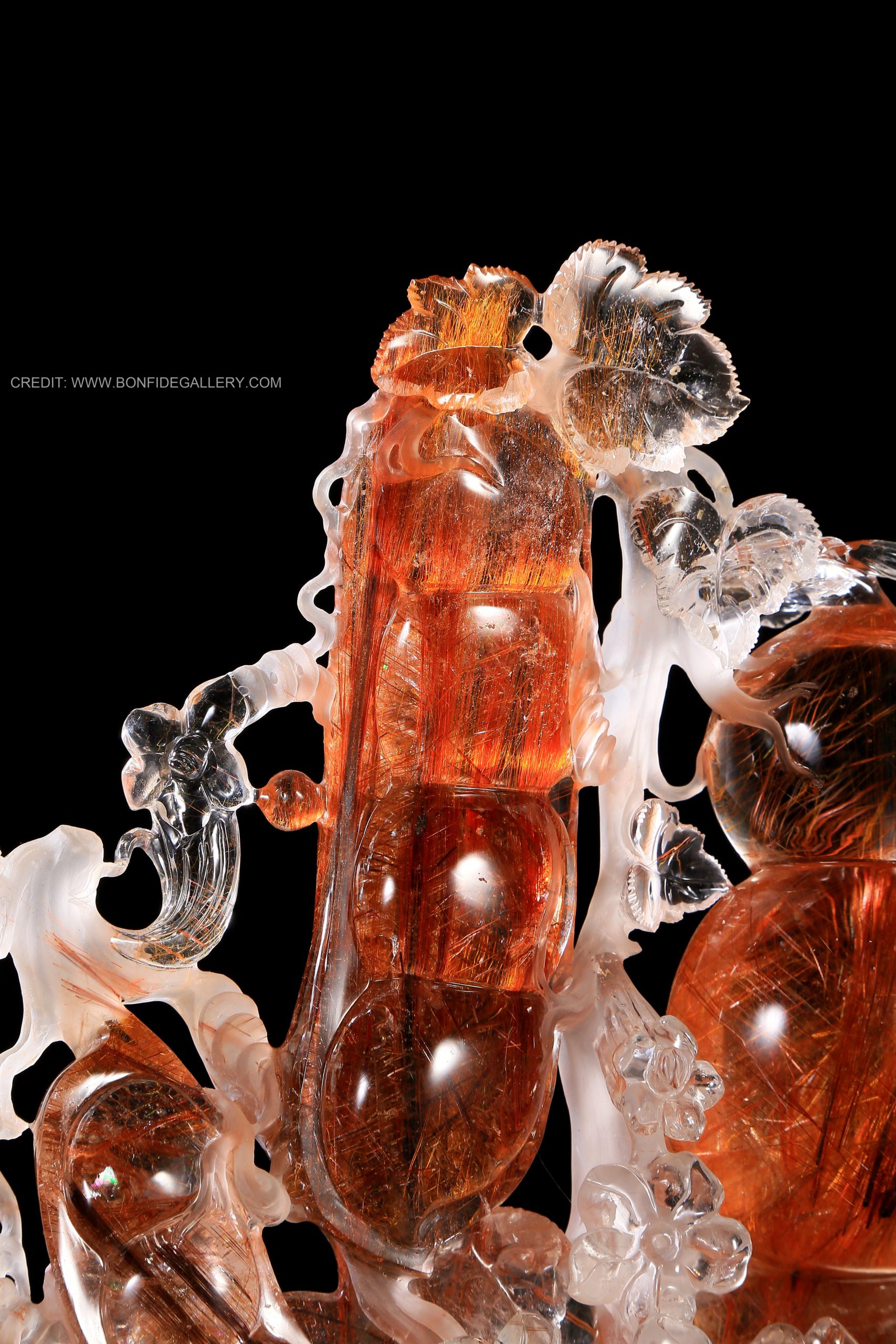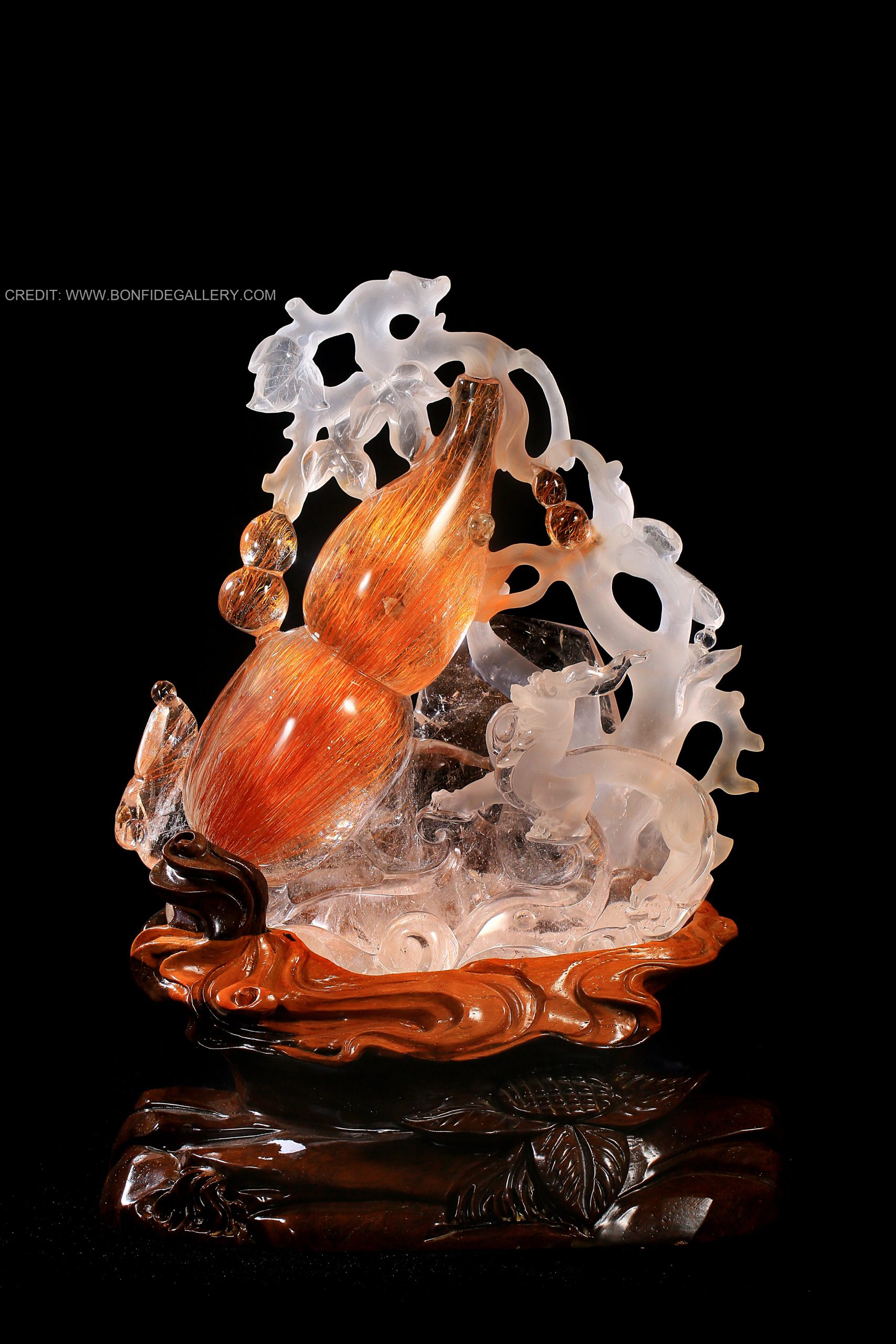 Beautiful Crystal Harmony Lobster. gemstone red-orange aquatic intricate nature sculpture crystal carving marine life