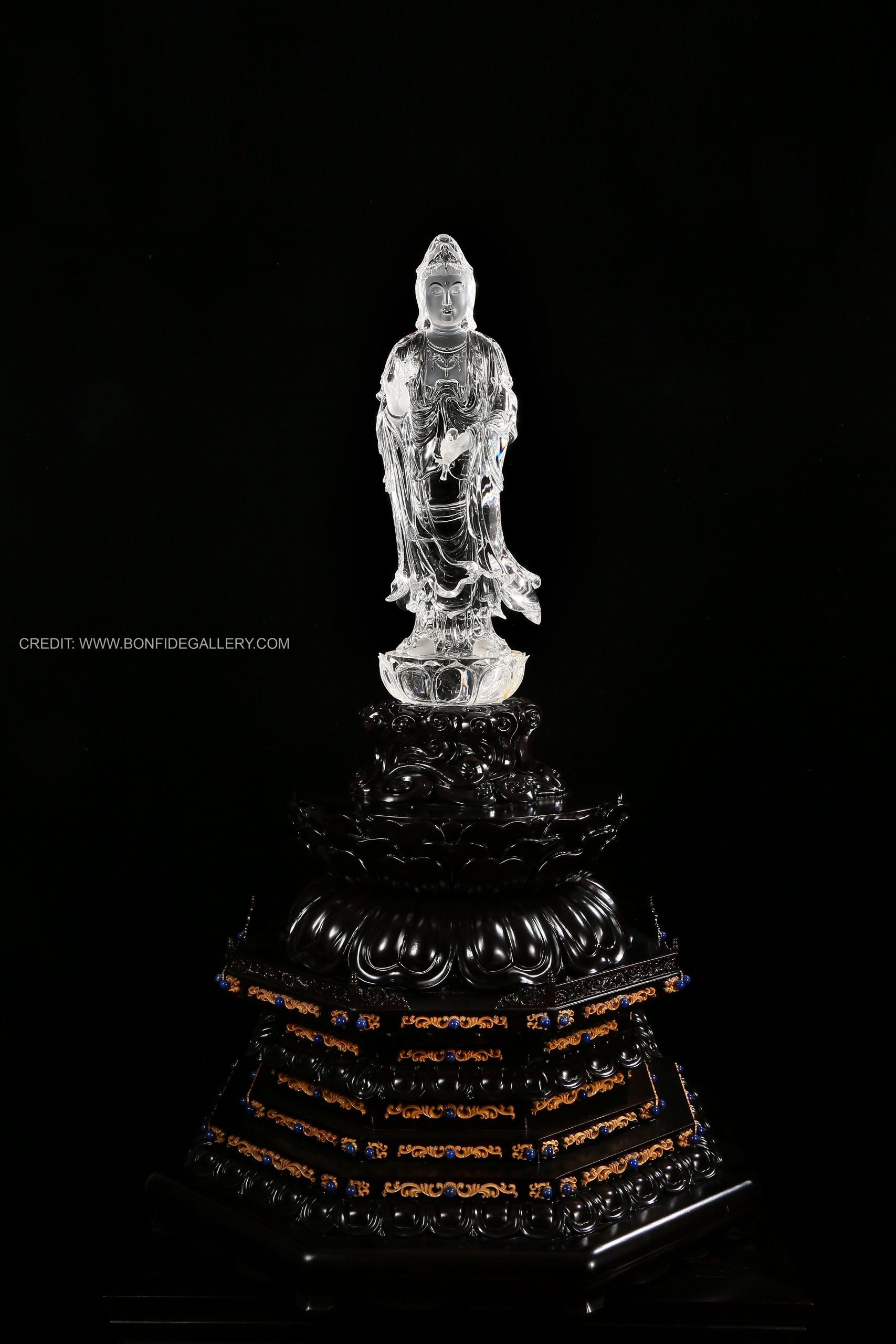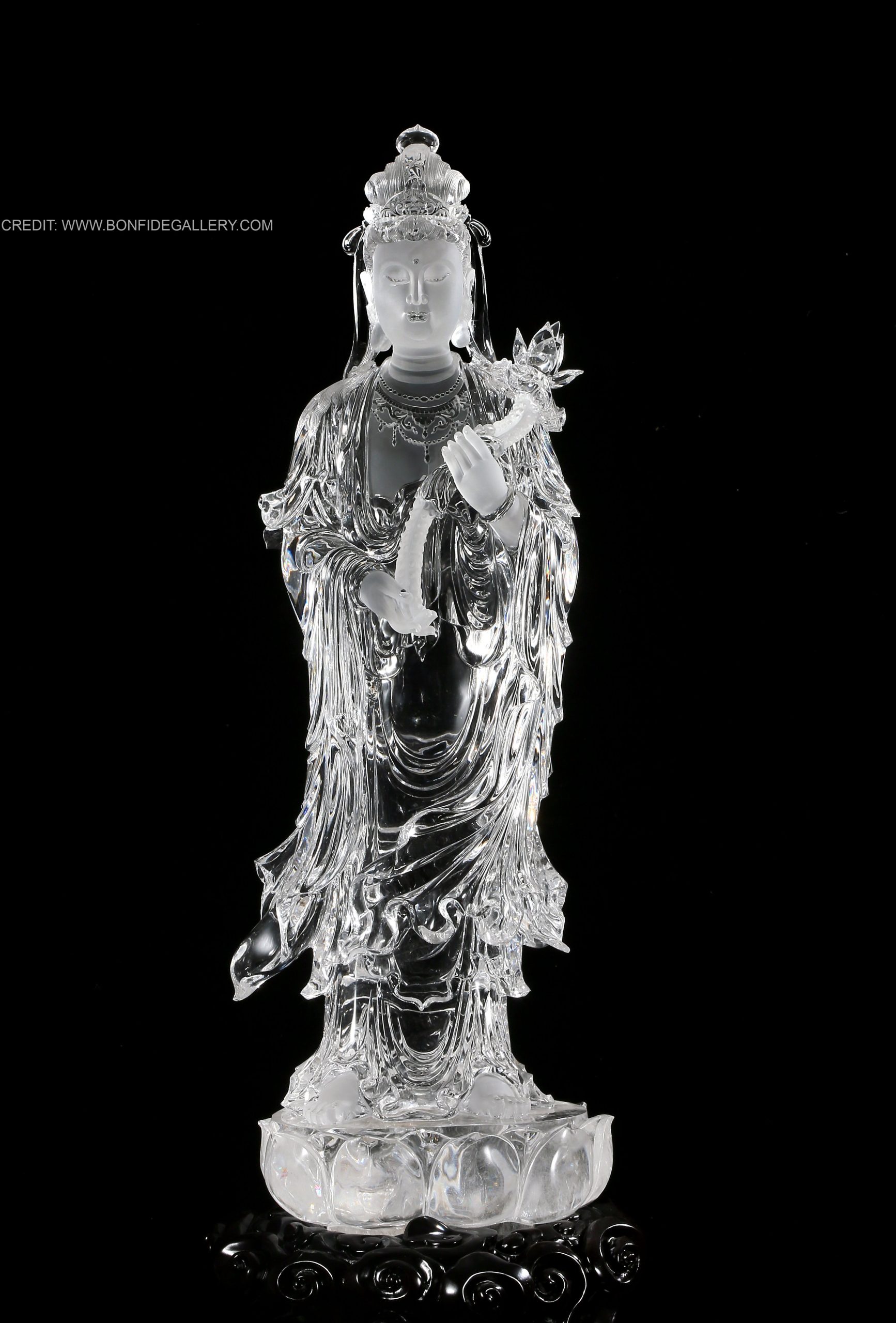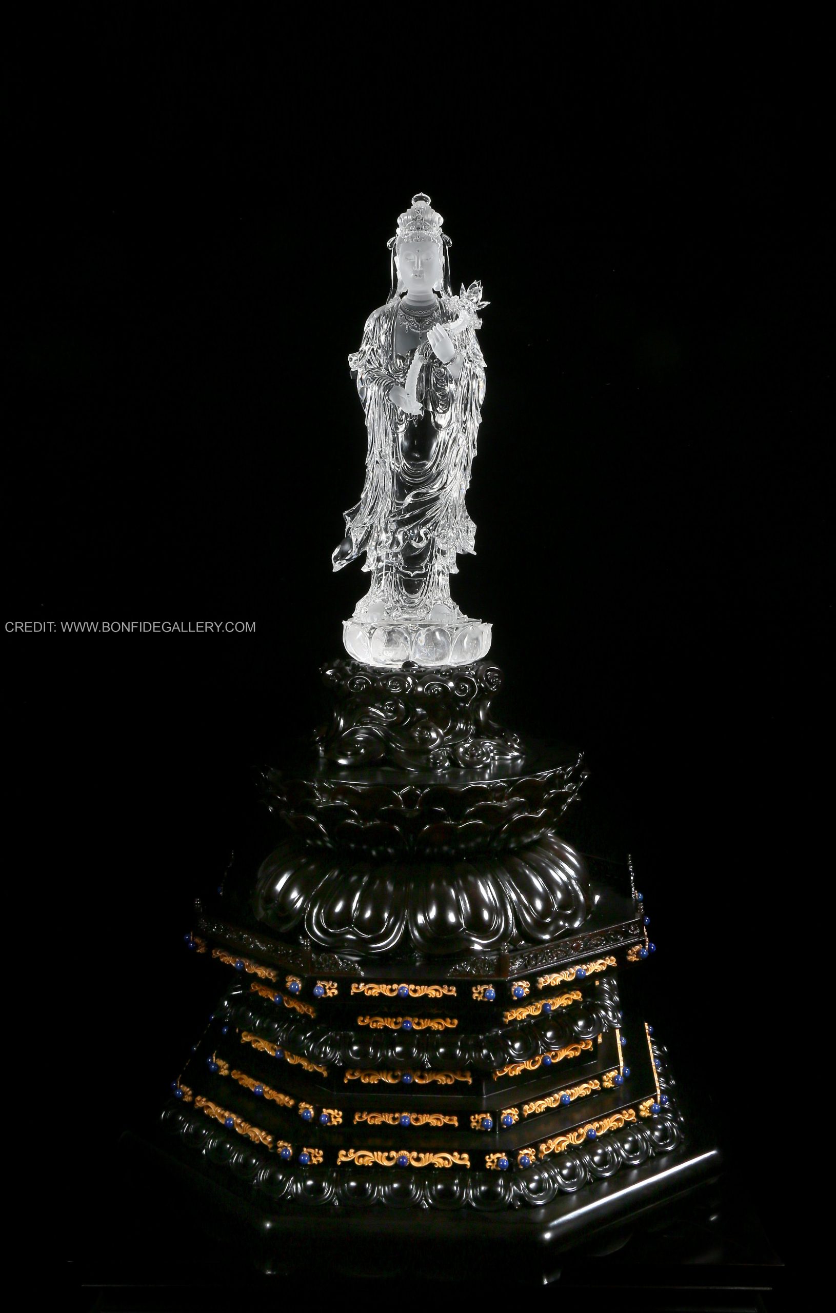 Beautiful Crystal Serenity Guardian. crystal deity spiritual translucent black pedestal meditation elegance craftsmanship