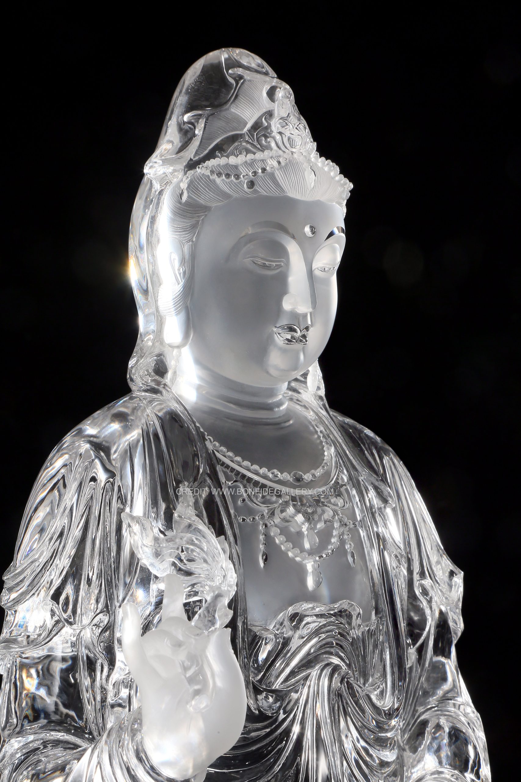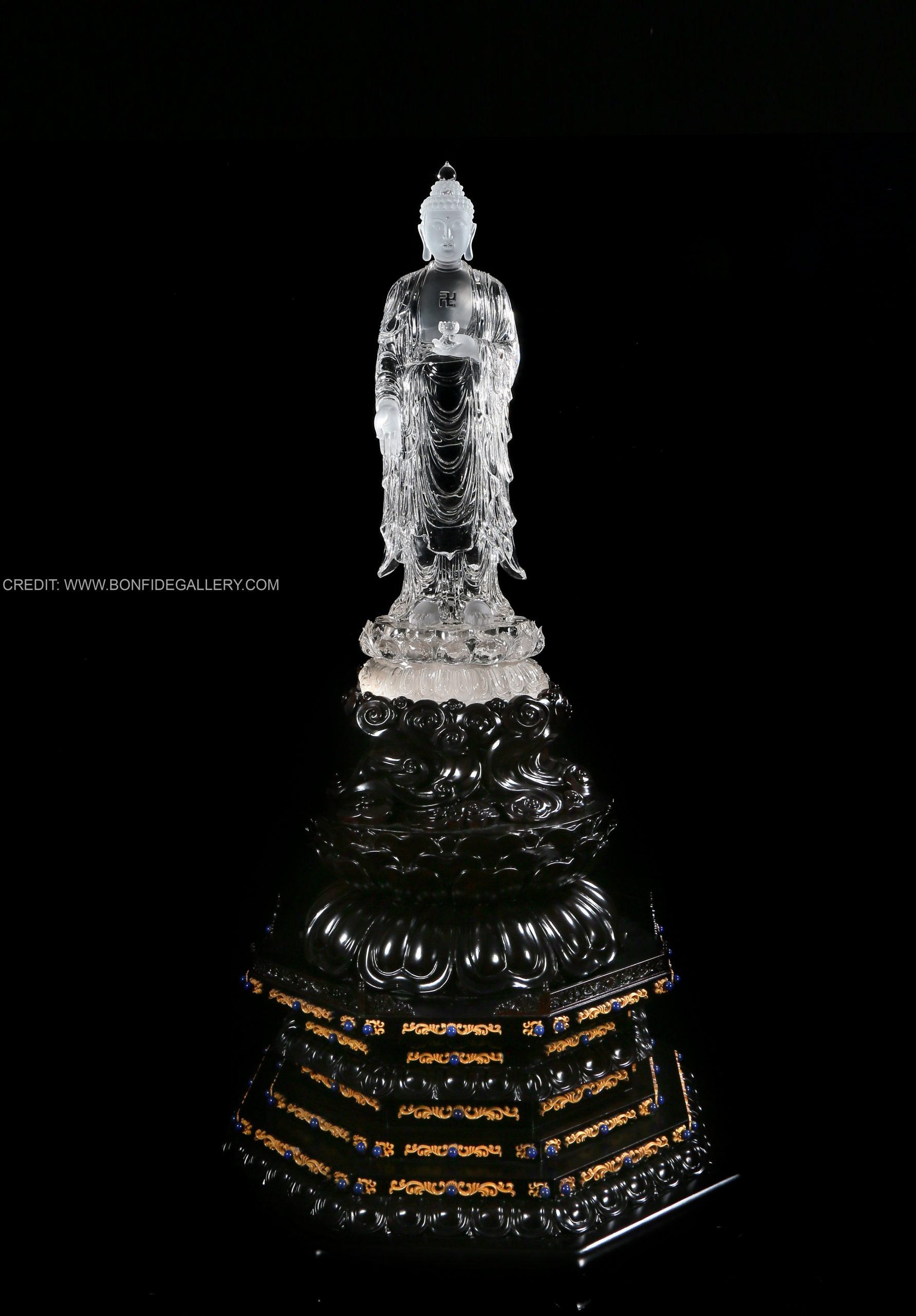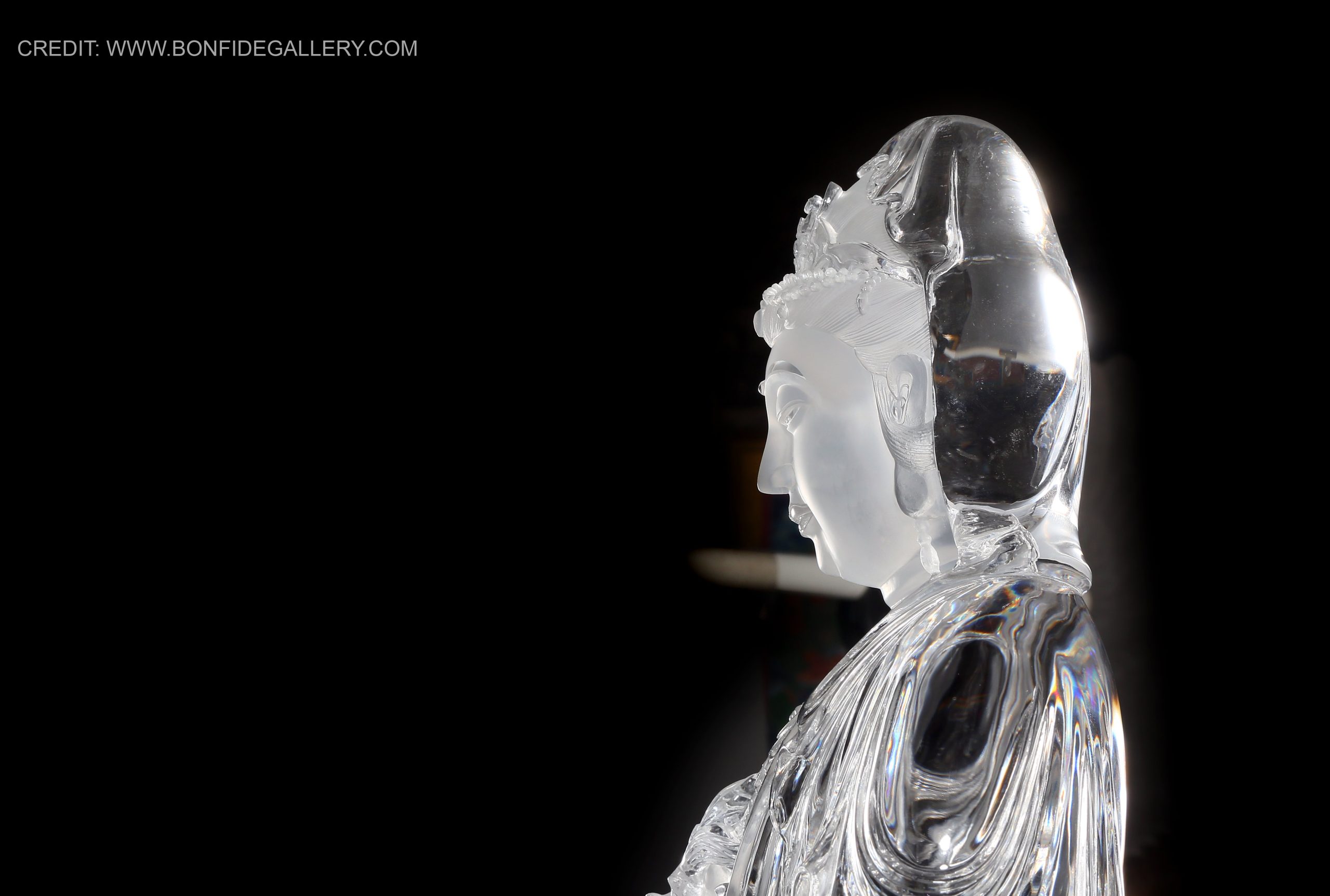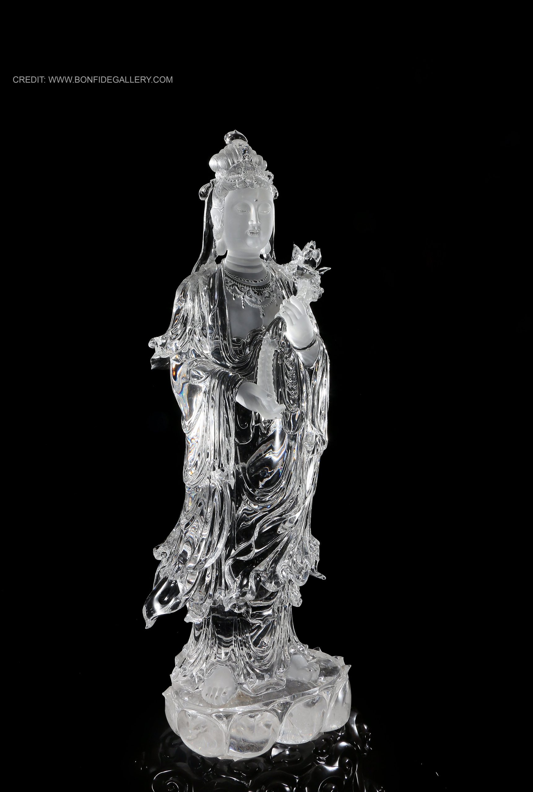 Beautiful Crystal Serenity Guardian. crystal deity spiritual translucent black pedestal meditation elegance craftsmanship
