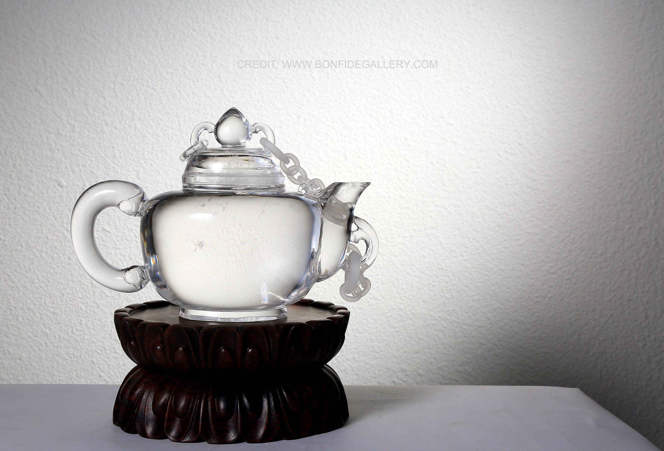 Beautiful Crystal Serenity Teapot. glass art teapot sculpture crystal clear elegant design tabletop decor transparent artistry