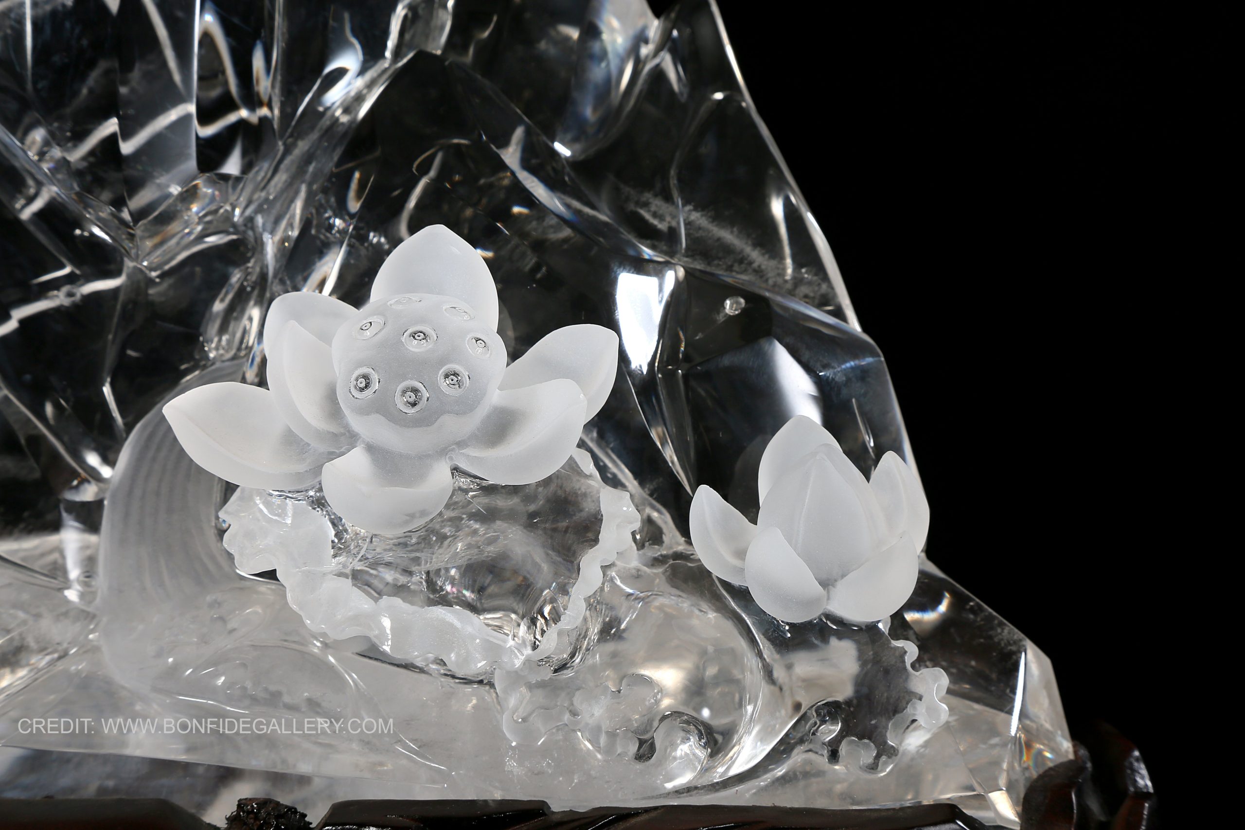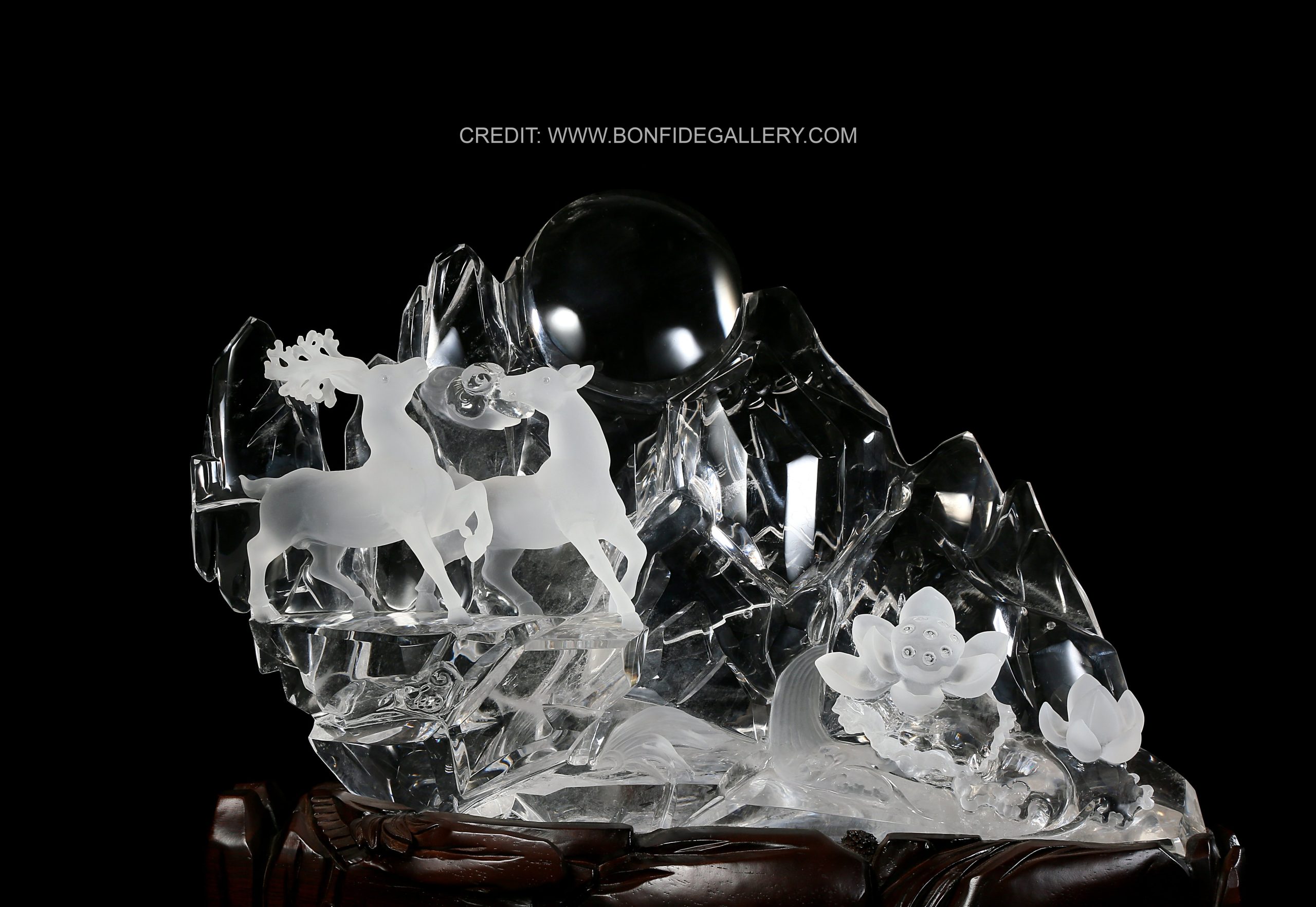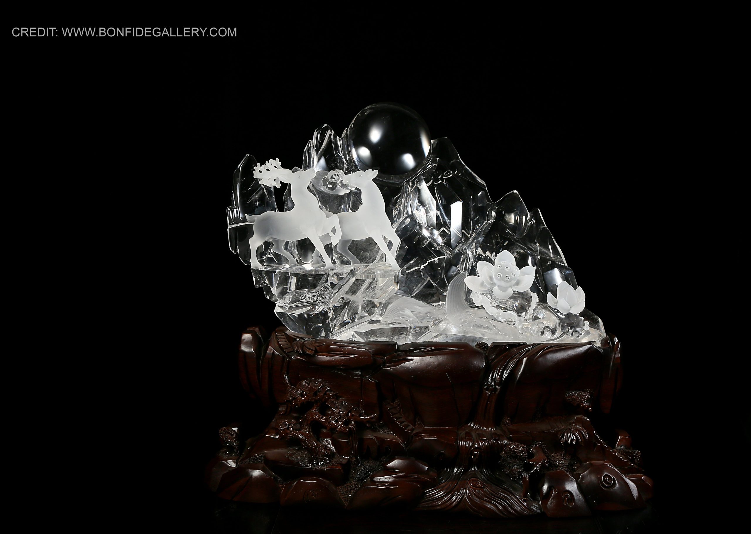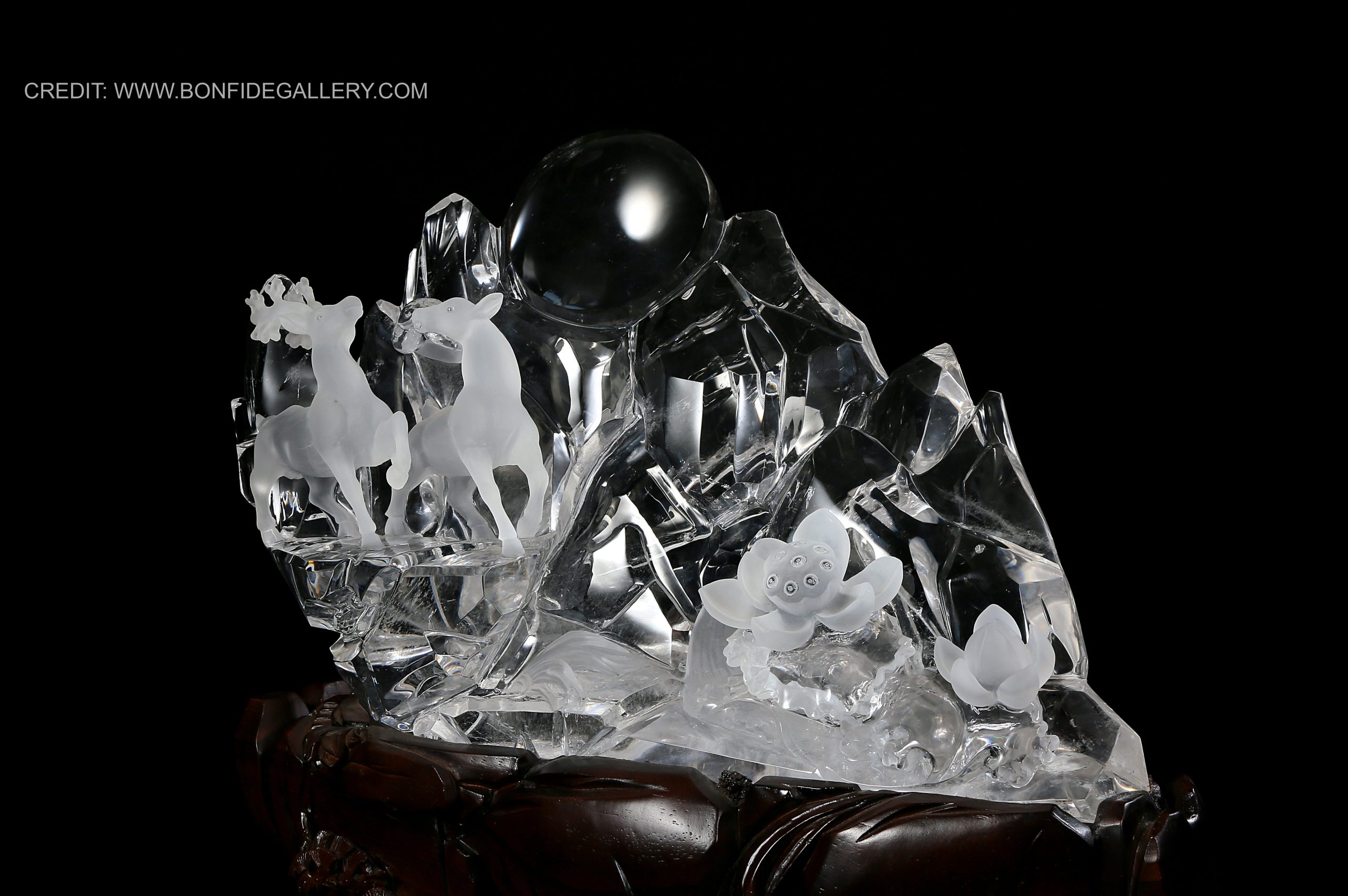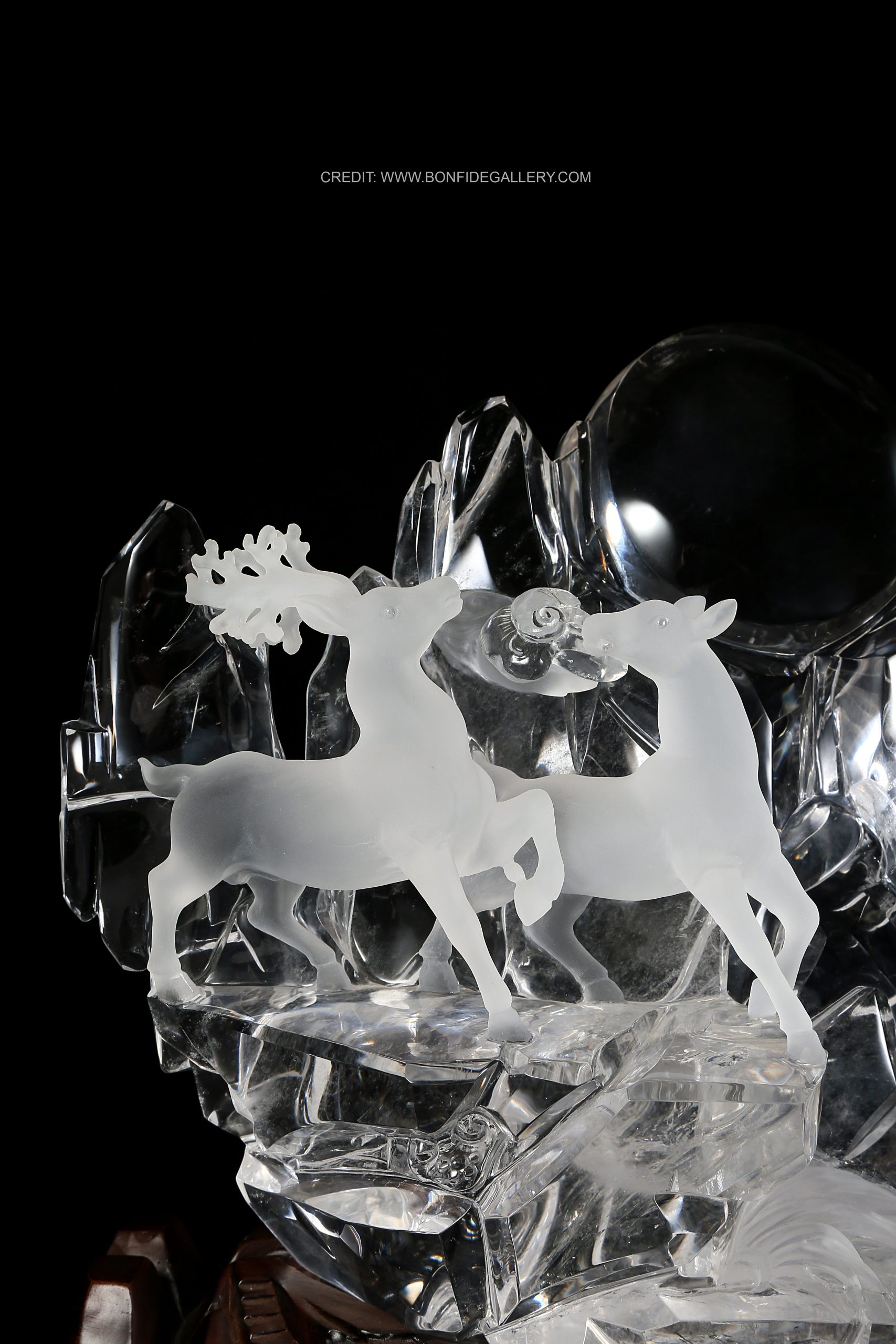 Beautiful Ethereal Crystal Landscape. crystal sculpture deer nature translucent mountain artistic handcrafted