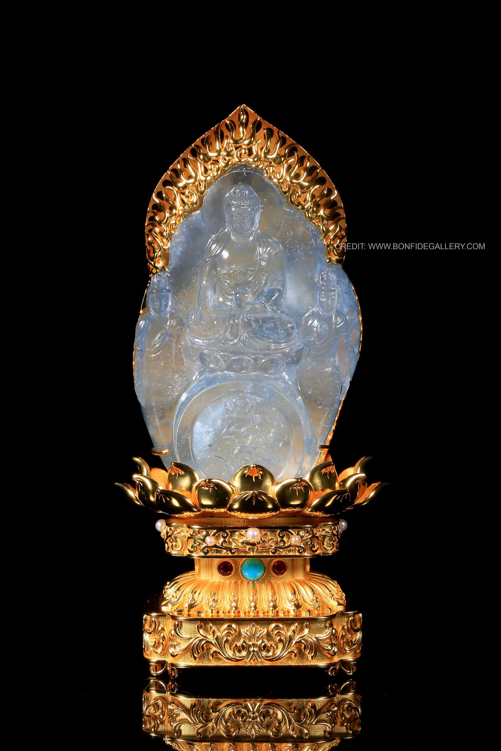 Beautiful Transcendent Luminary Buddha. Buddha crystal gold accents spiritual lotus base enlightenment divine aura